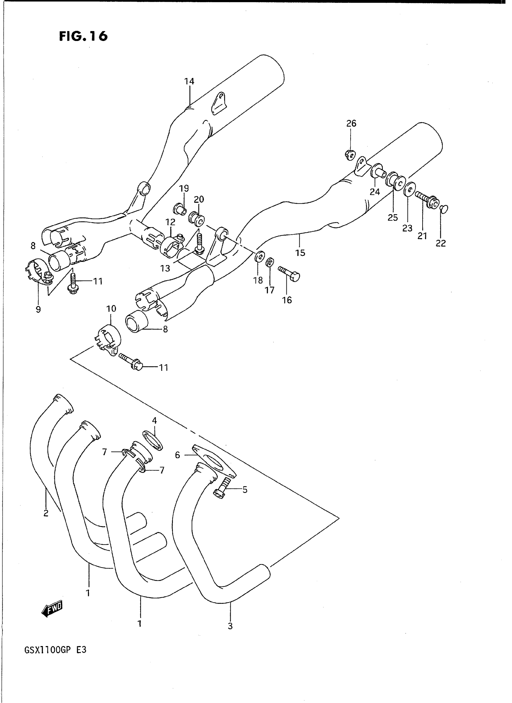 Suzuki GSX1100GP (1993) MUFFLER Diagram