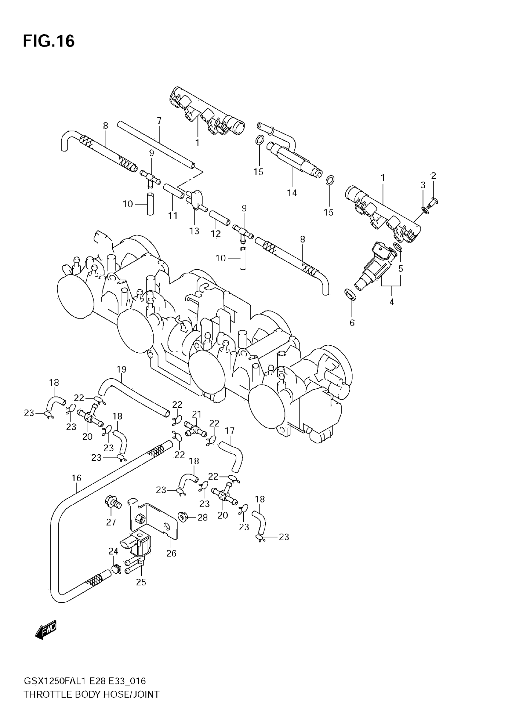 Suzuki GSX1250FAL1 (2011) THROTTLE BODY HOSE/JOINT (E33) Diagram