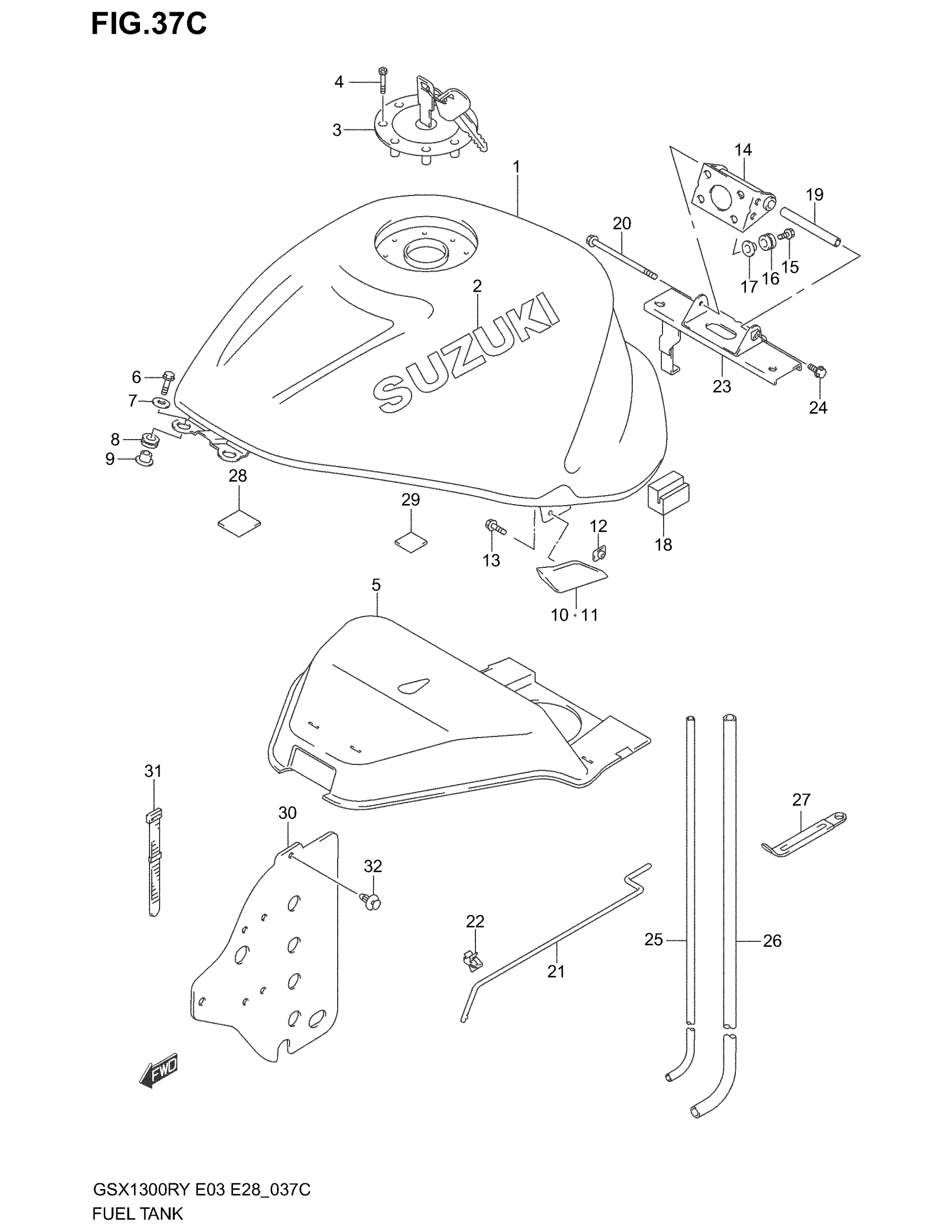 Suzuki GSX1300R (2003) FUEL TANK (MODEL K2) Diagram