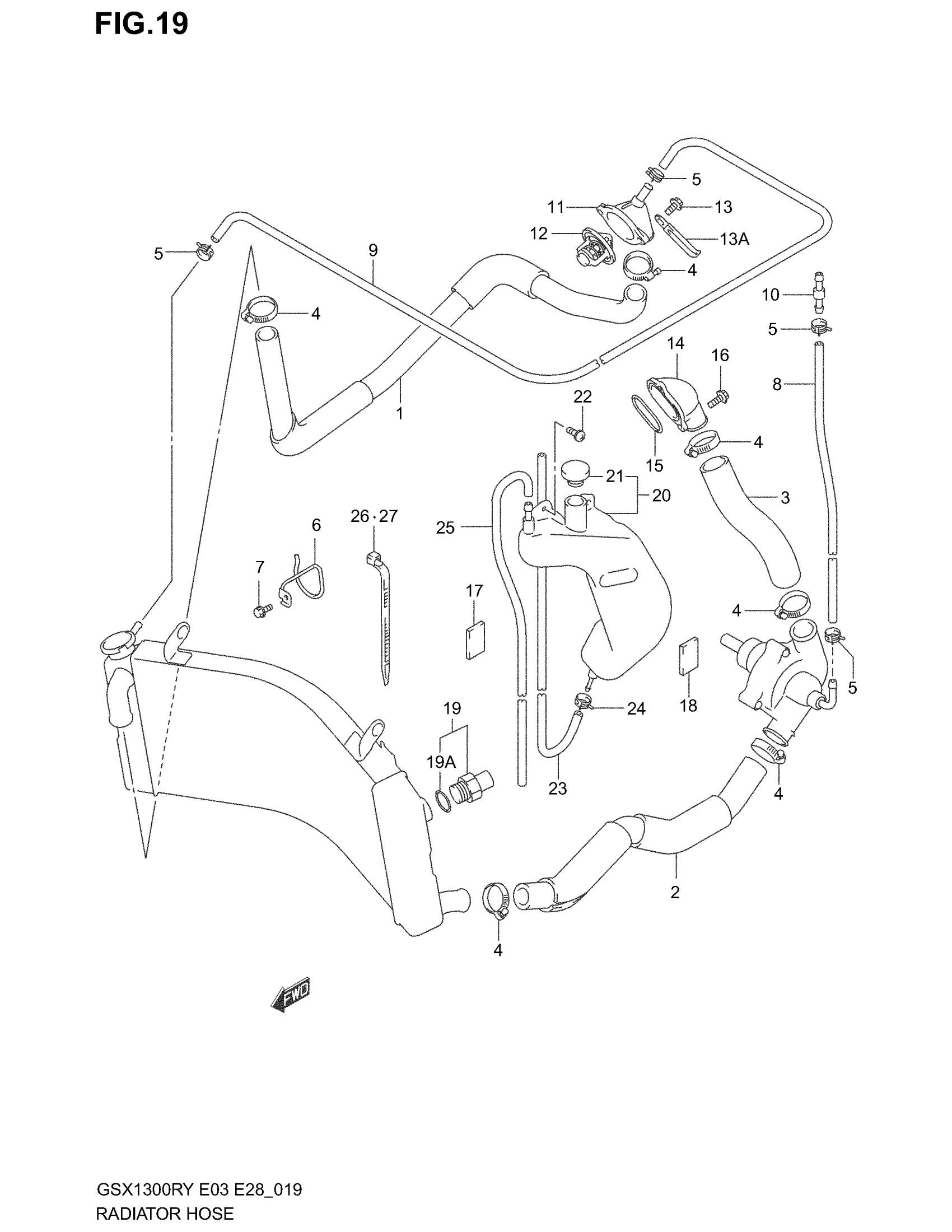 Suzuki GSX1300R (2003) RADIATOR HOSE Diagram