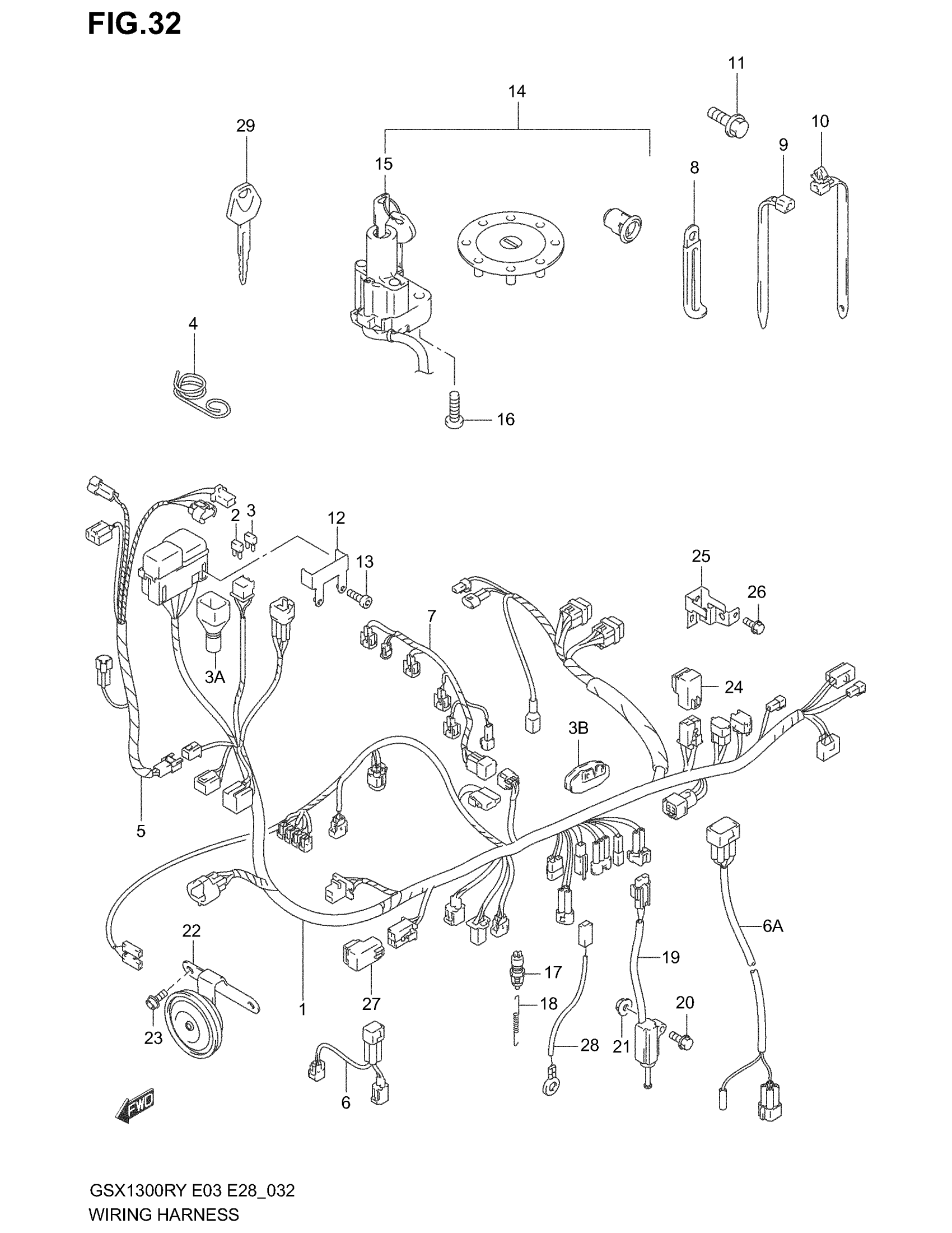 Suzuki GSX1300R (2003) WIRING HARNESS (MODEL X/Y/K1/K2) Diagram