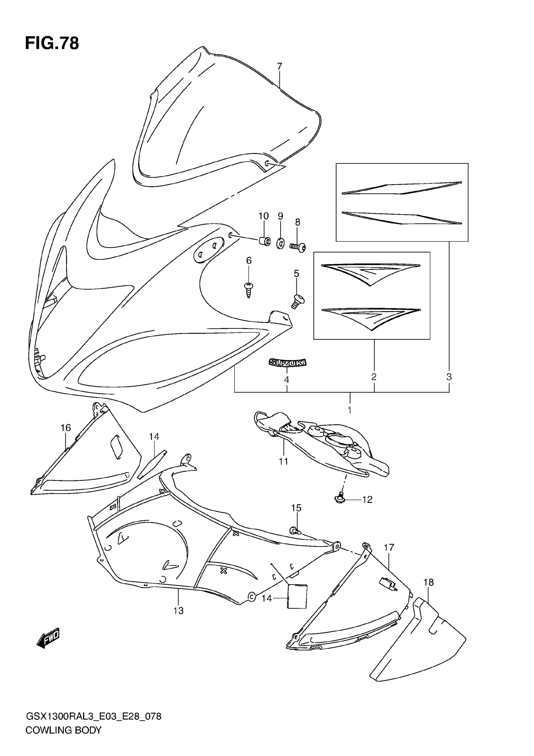 Suzuki GSX1300RAL3 (2013) COWLING BODY Diagram