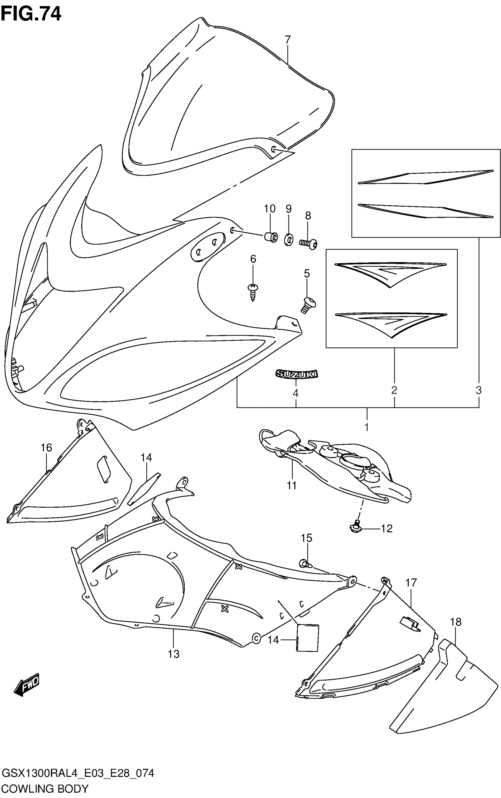 Suzuki GSX1300RAL4 (2014) COWLING BODY Diagram