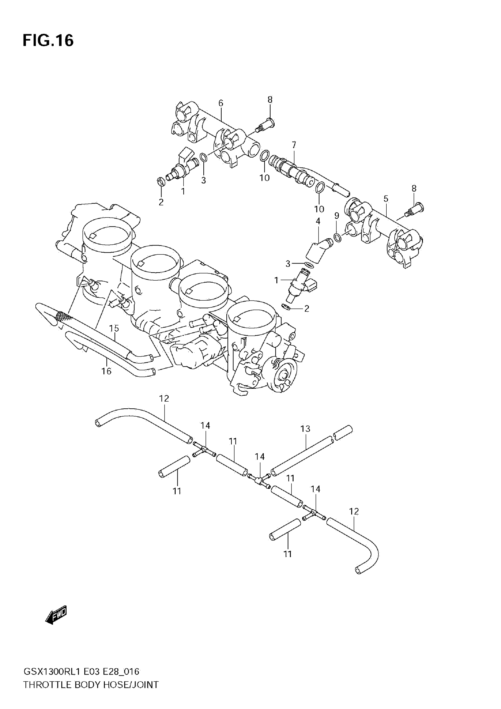 Suzuki GSX1300RL1 (2011) THROTTLE BODY HOSE/JOINT (E28) Diagram
