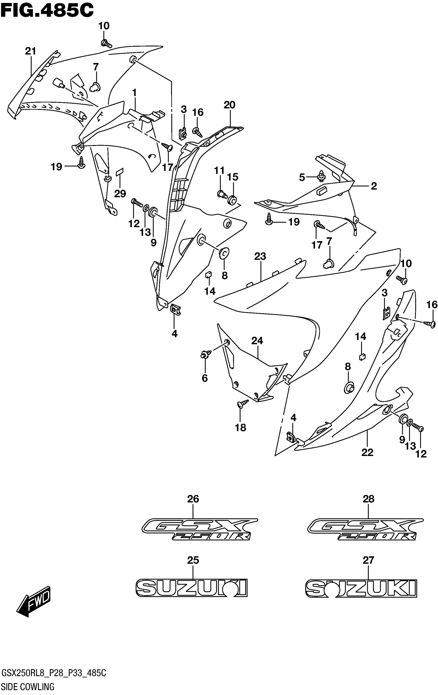 Suzuki GSX250RL8 (2018) SIDE COWLING (GW250RL8 P33) (FOR YAY) Diagram