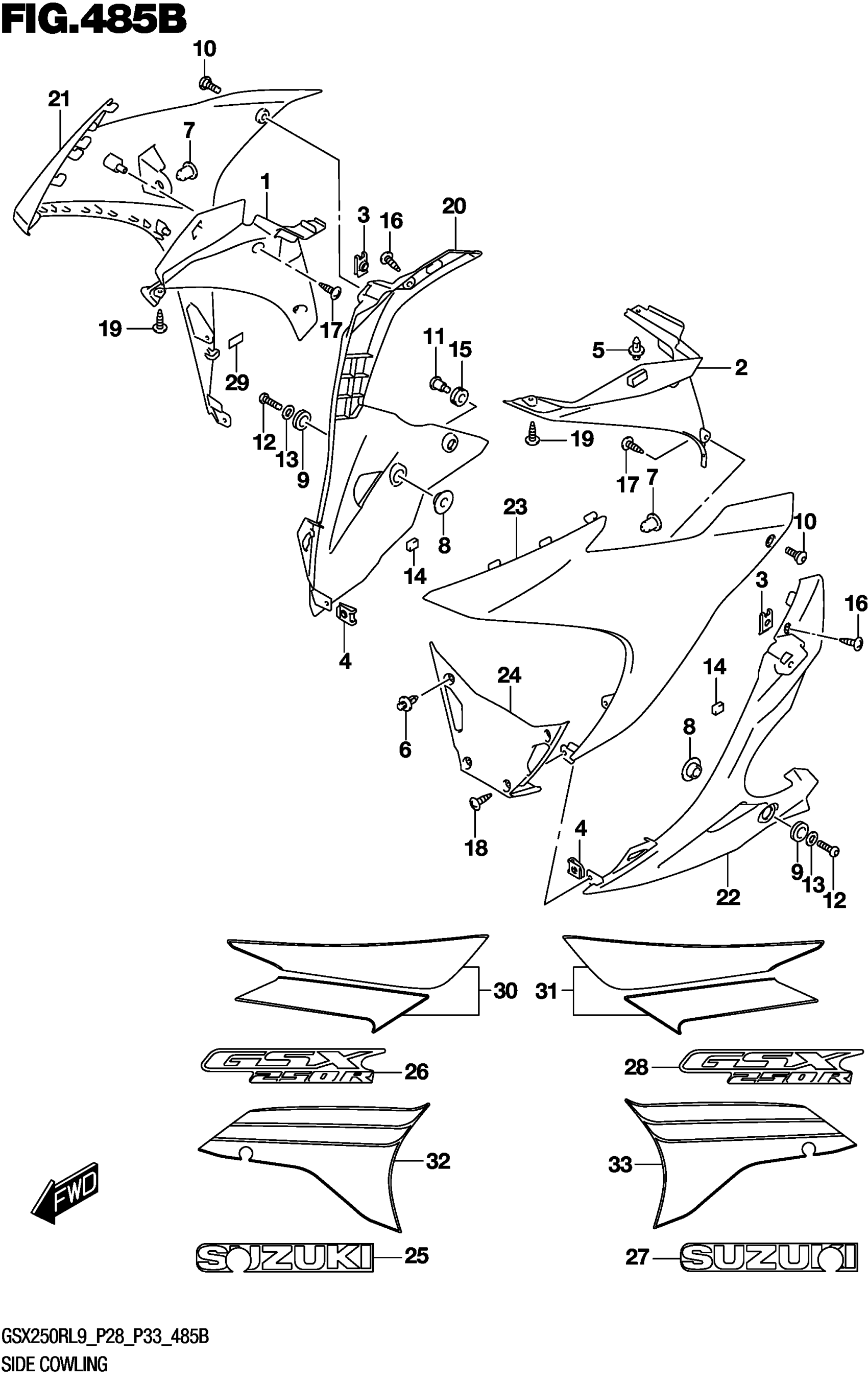 Suzuki GSX250RL9 (2019) SIDE COWLING (GSX250RL9 P28) (FOR 4CX,AY4,BEE) Diagram