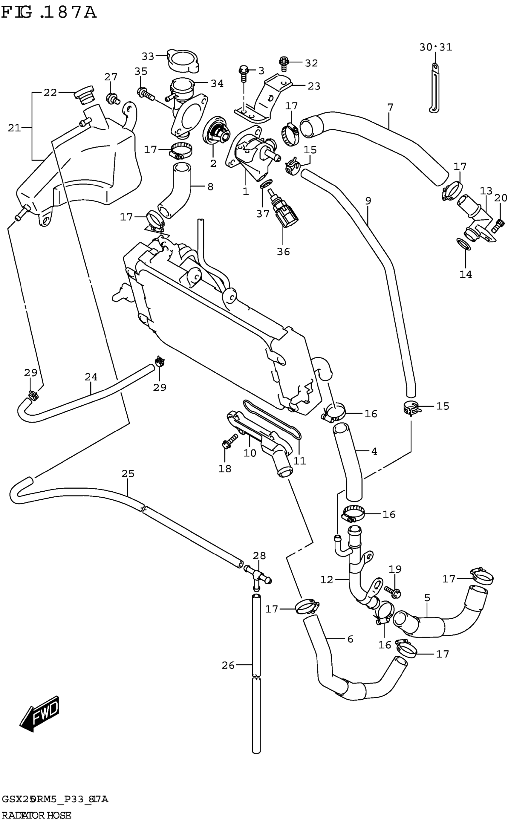 Suzuki GSX250RRLJM5 (2025) RADIATOR HOSE Diagram