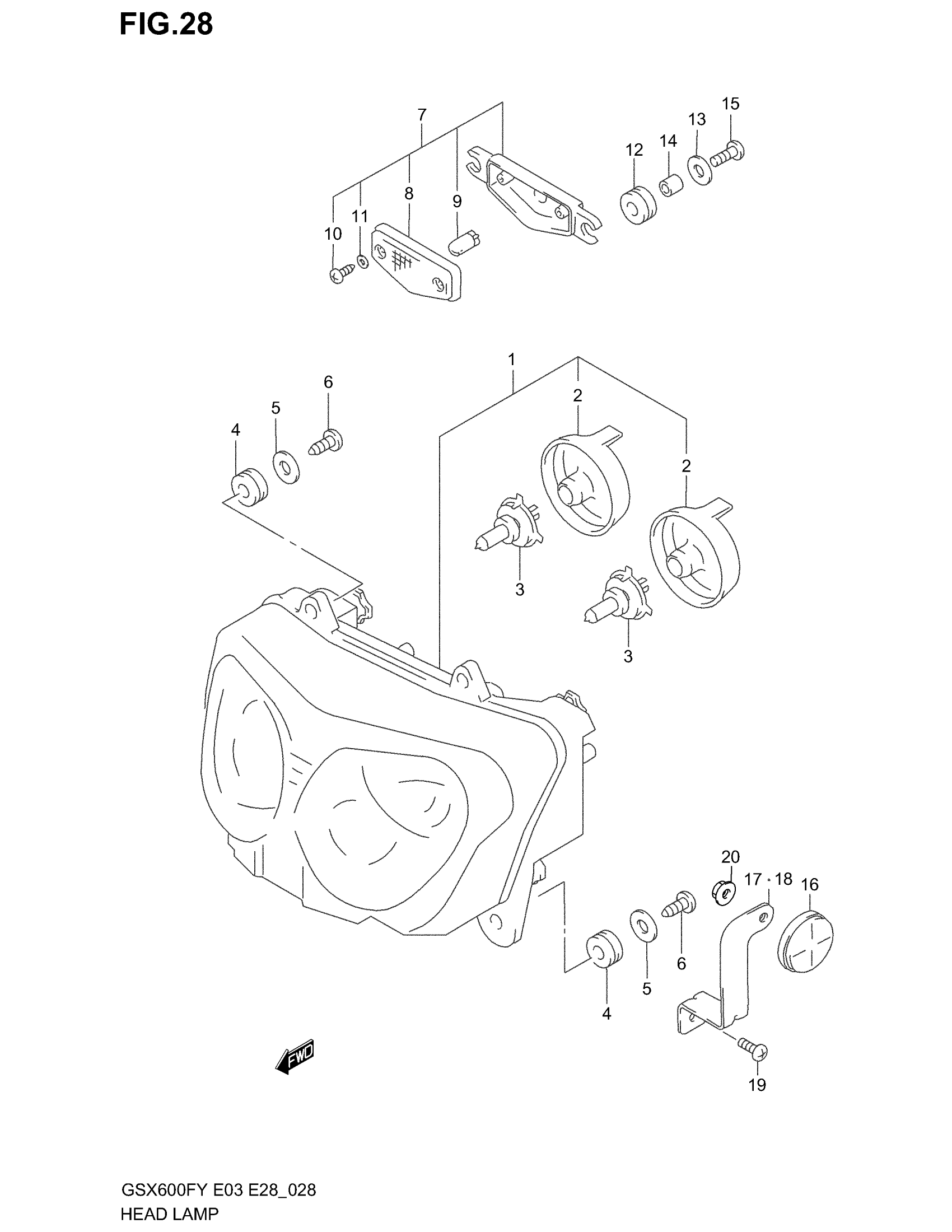 Suzuki GSX600F (2003) HEADLAMP (MODEL W/X/Y/K1/K2) Diagram