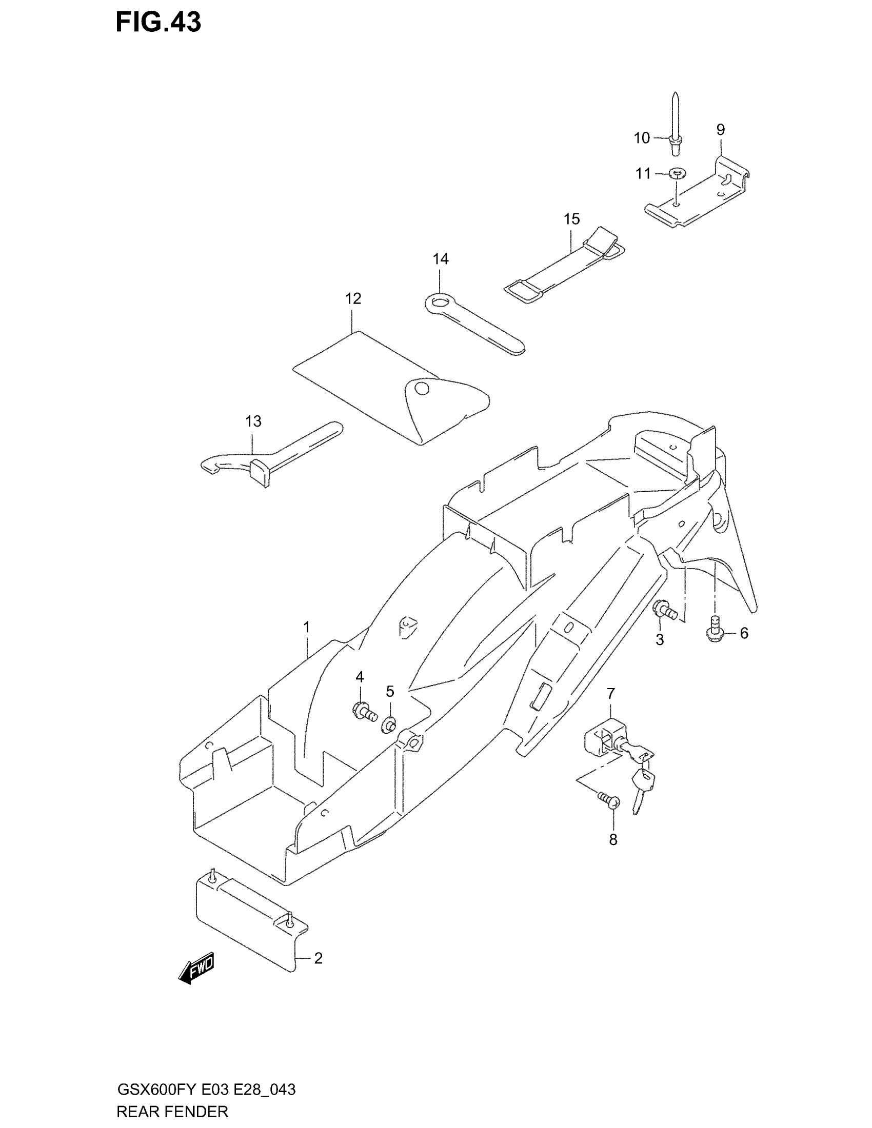 Suzuki GSX600F (2003) REAR FENDER (MODEL W/X/Y/K1/K2) Diagram