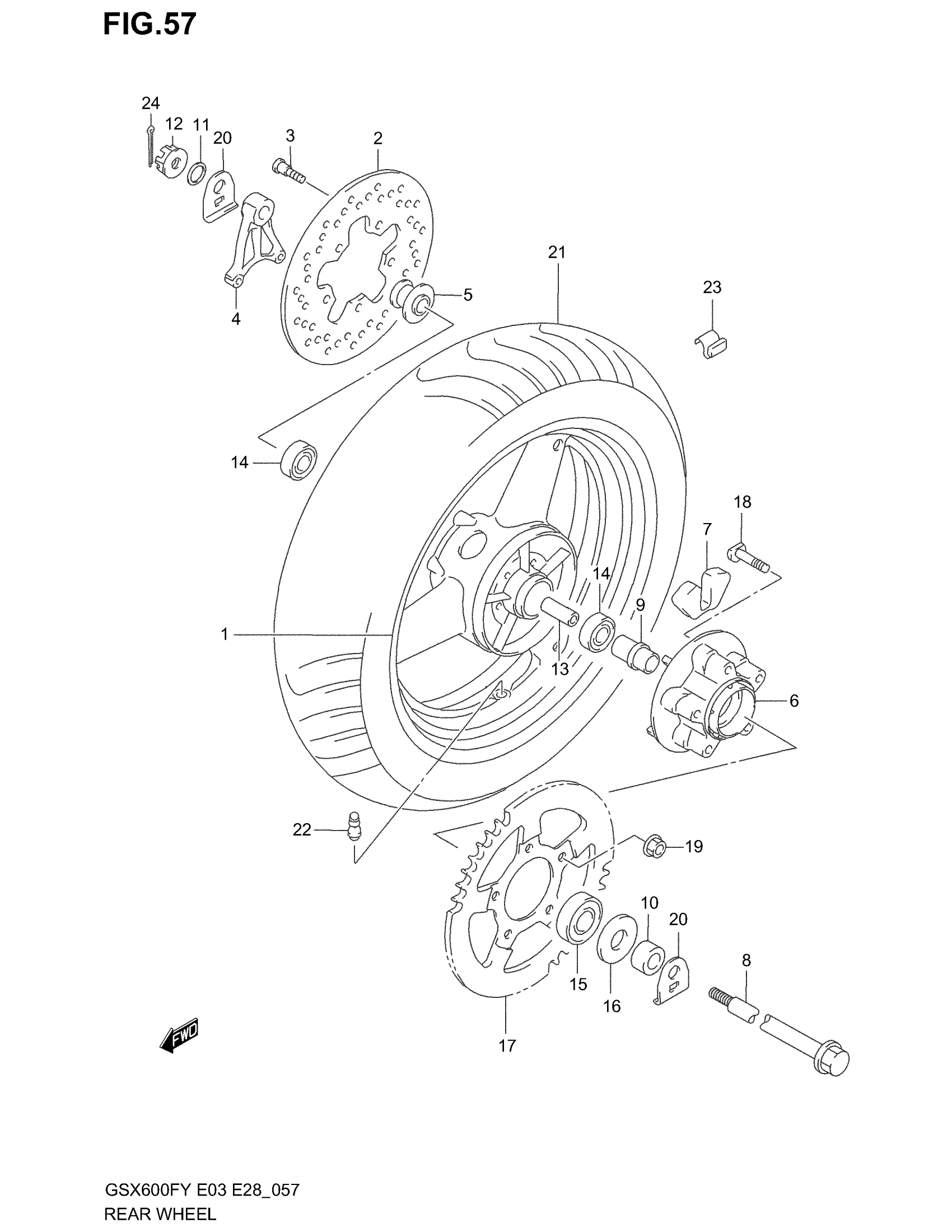 Suzuki GSX600F (2003) REAR WHEEL Diagram