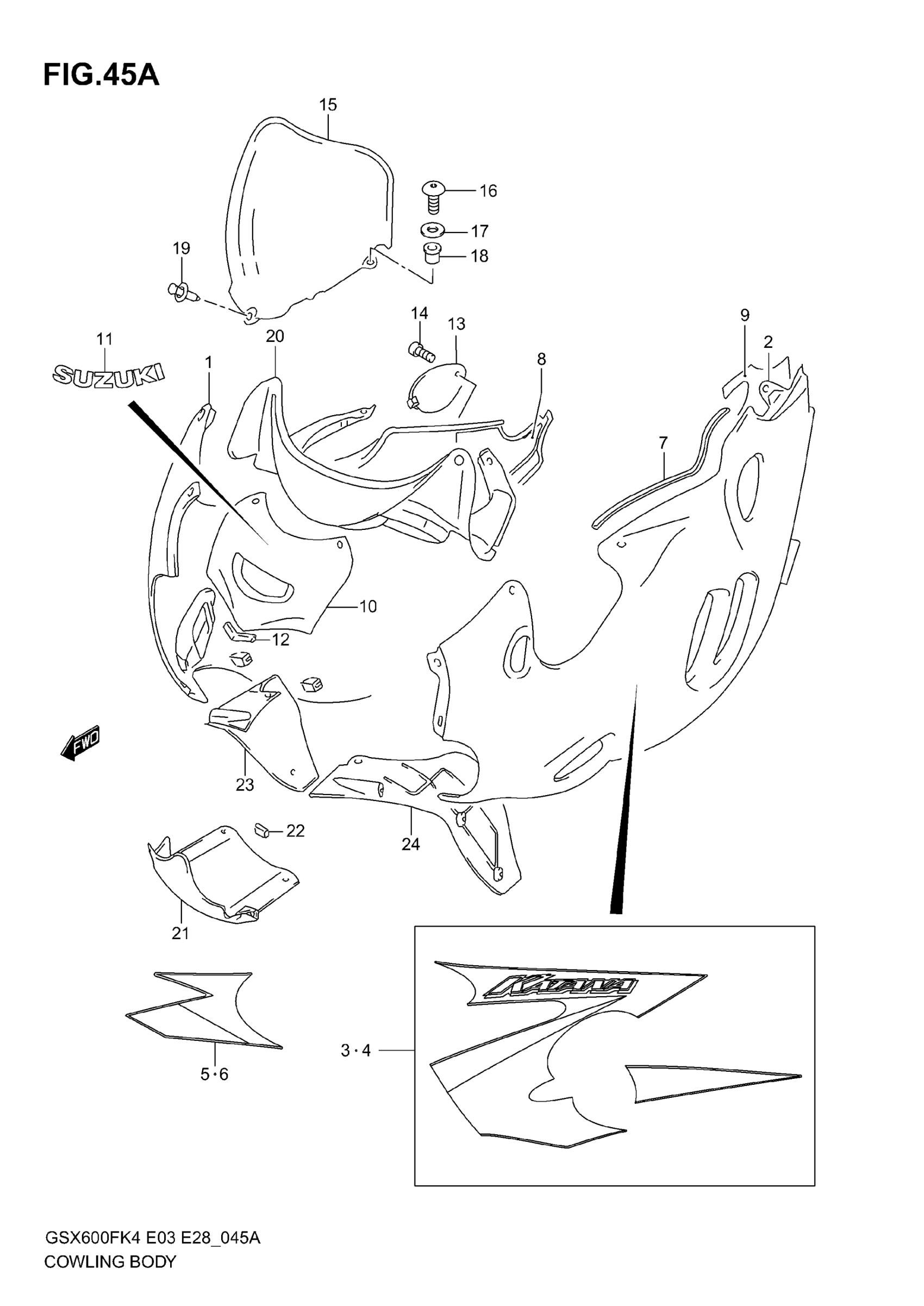 Suzuki GSX600F (2006) COWLING BODY (MODEL K5) Diagram
