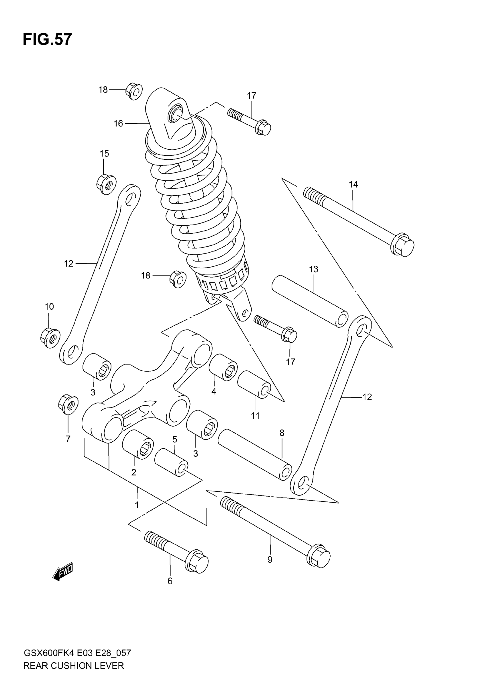 Suzuki GSX600F (2006) REAR CUSHION LEVER Diagram