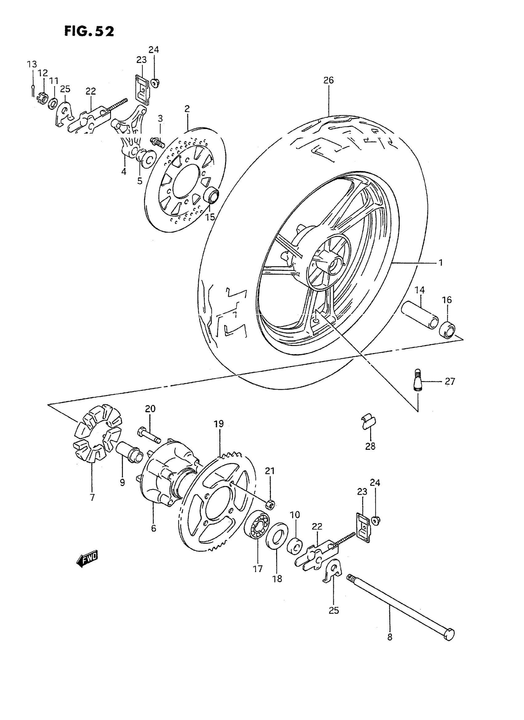 Suzuki GSX600FT (1996) REAR WHEEL (MODEL J) Diagram