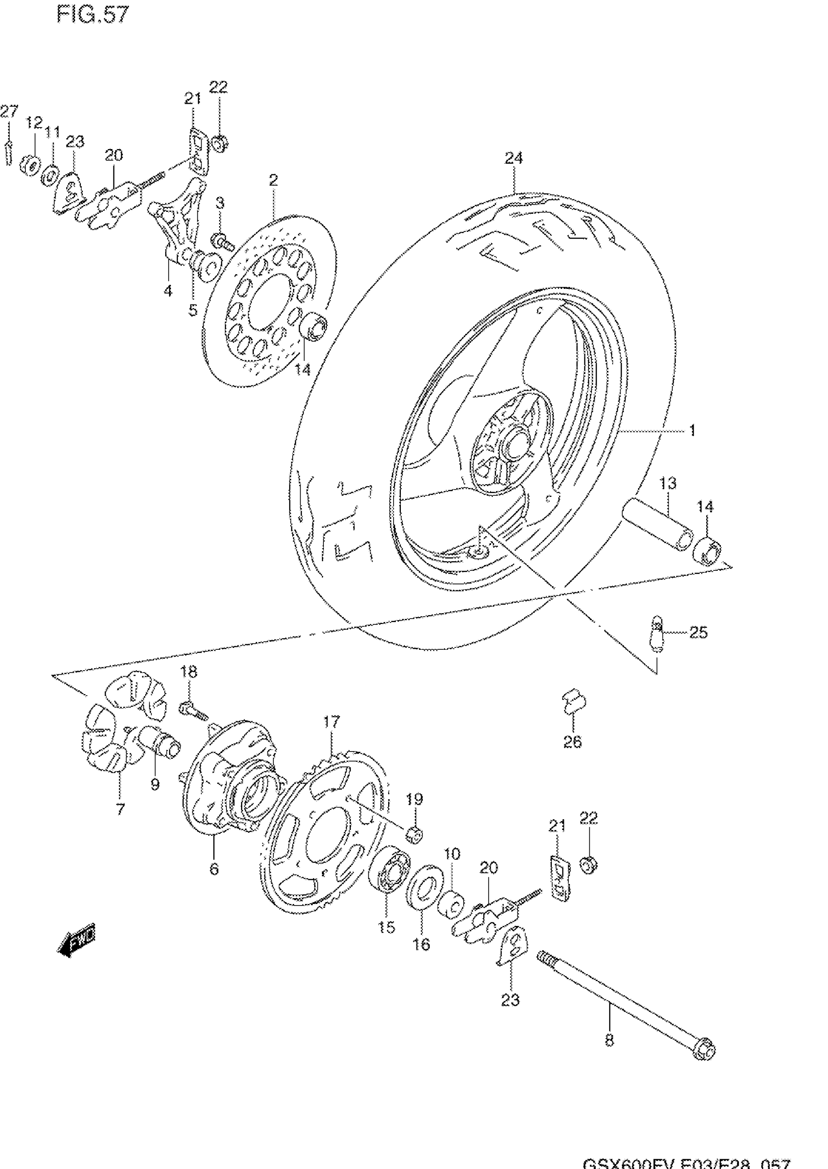 Suzuki GSX600FV (1997) REAR WHEEL Diagram