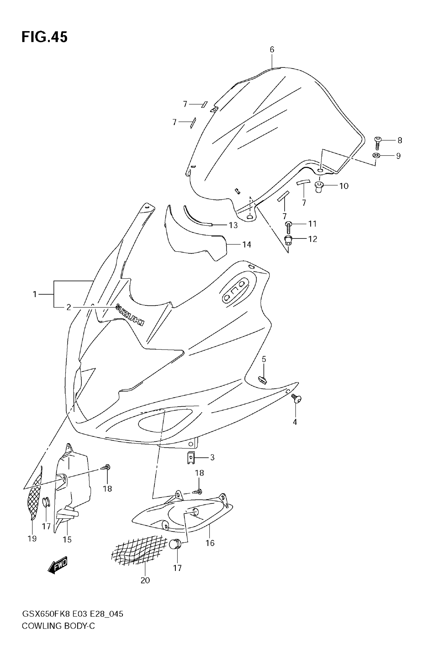 Suzuki GSX650F (2009) COWLING BODY Diagram