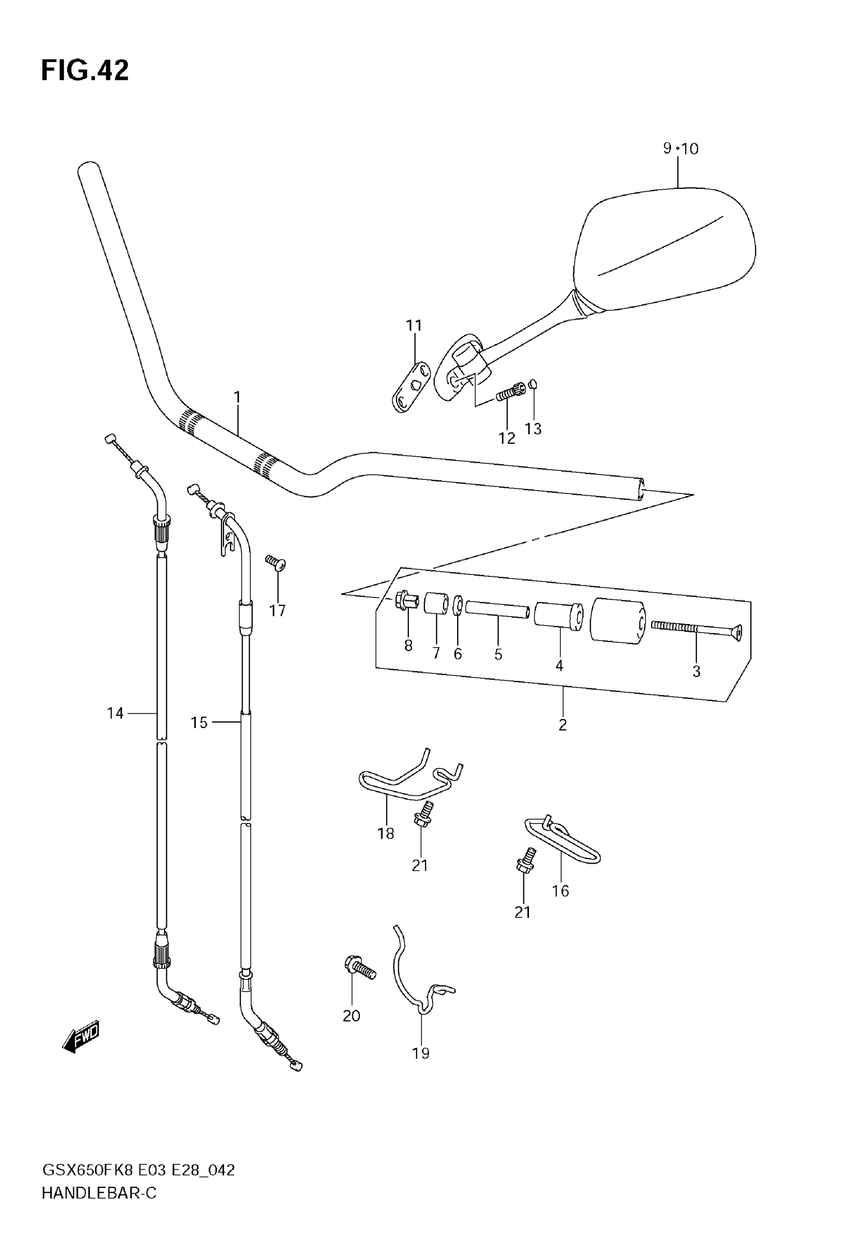 Suzuki GSX650F (2009) HANDLEBAR Diagram
