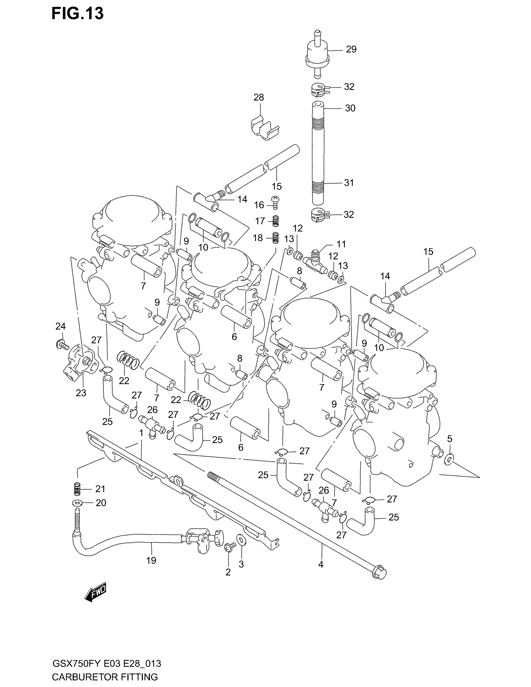 Suzuki GSX750F (2003) CARBURETOR FITTINGS Diagram