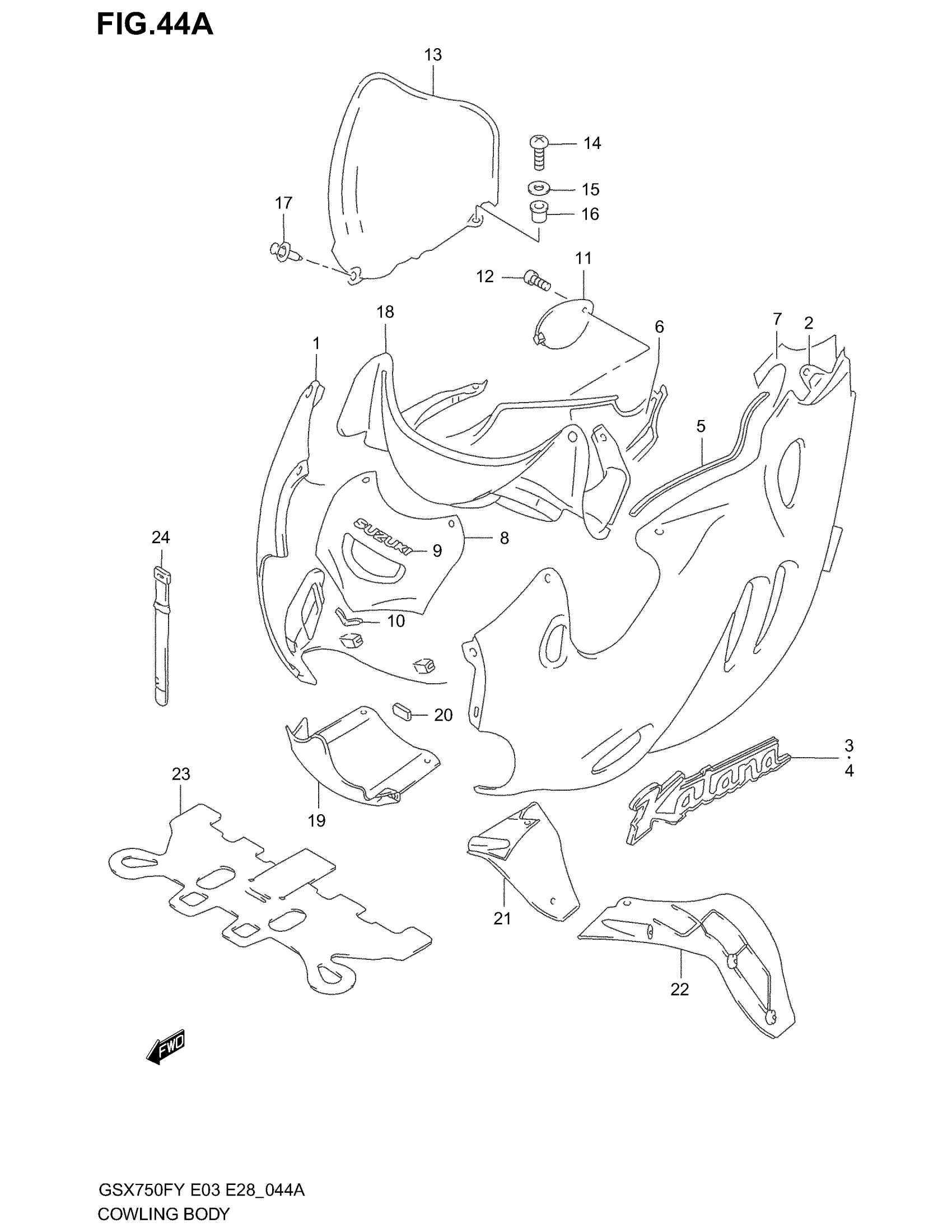 Suzuki GSX750F (2003) COWLING BODY (MODEL X) Diagram