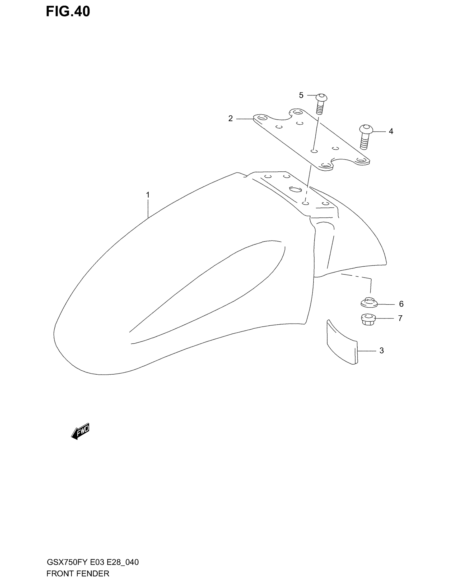 Suzuki GSX750F (2003) FRONT FENDER (MODEL W/X/Y/K1/K2) Diagram
