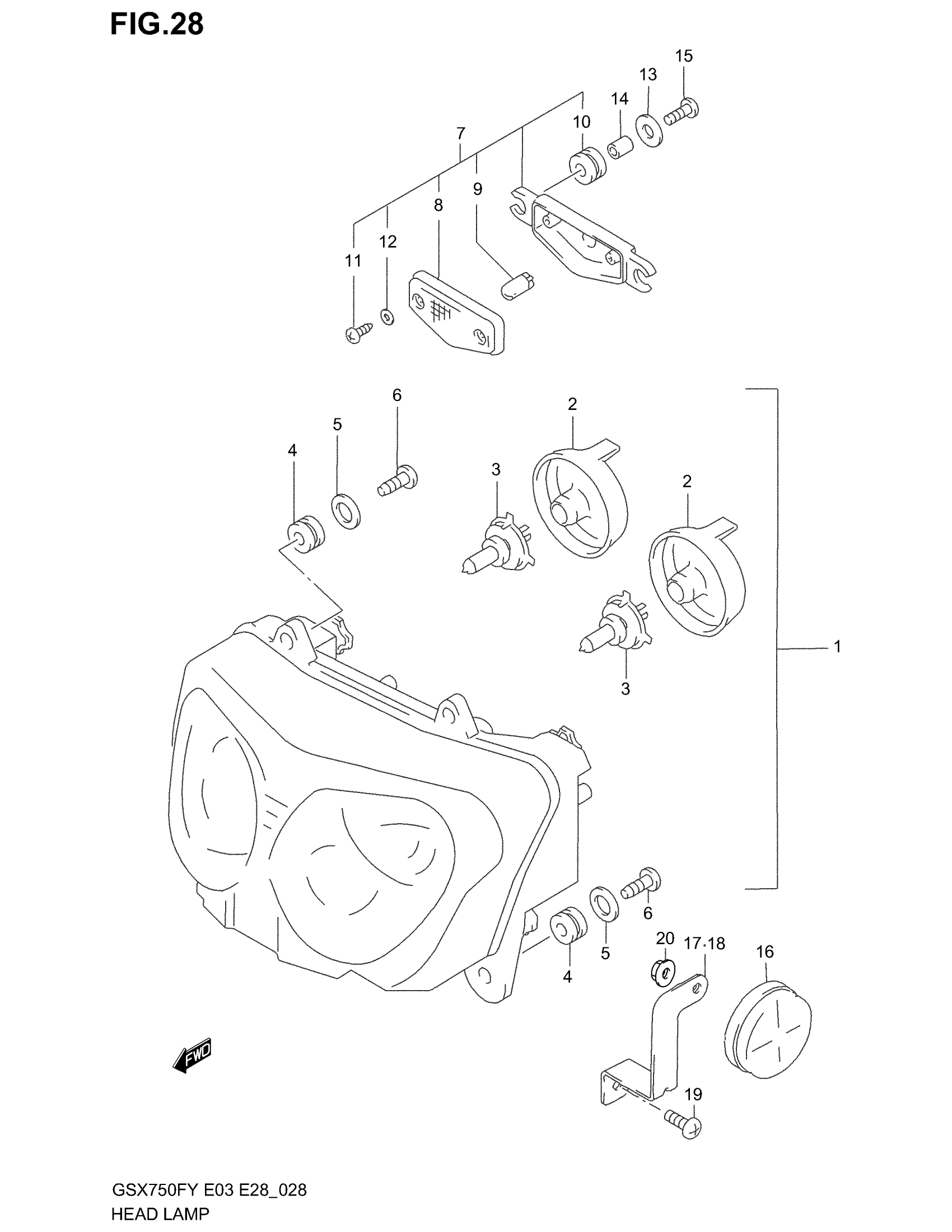 Suzuki GSX750F (2003) HEADLAMP (MODEL W/X/Y/K1/K2) Diagram