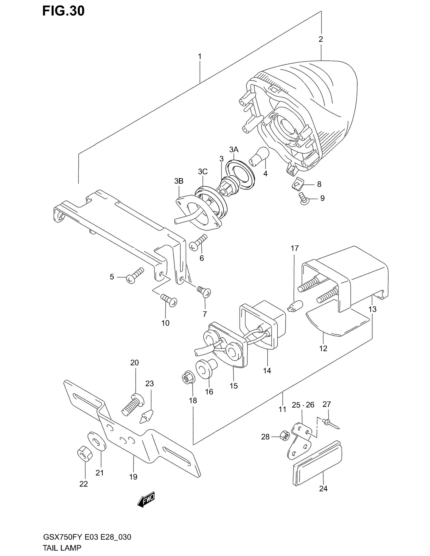 Suzuki GSX750F (2003) TAIL LAMP (MODEL W/X/Y/K1/K2) Diagram
