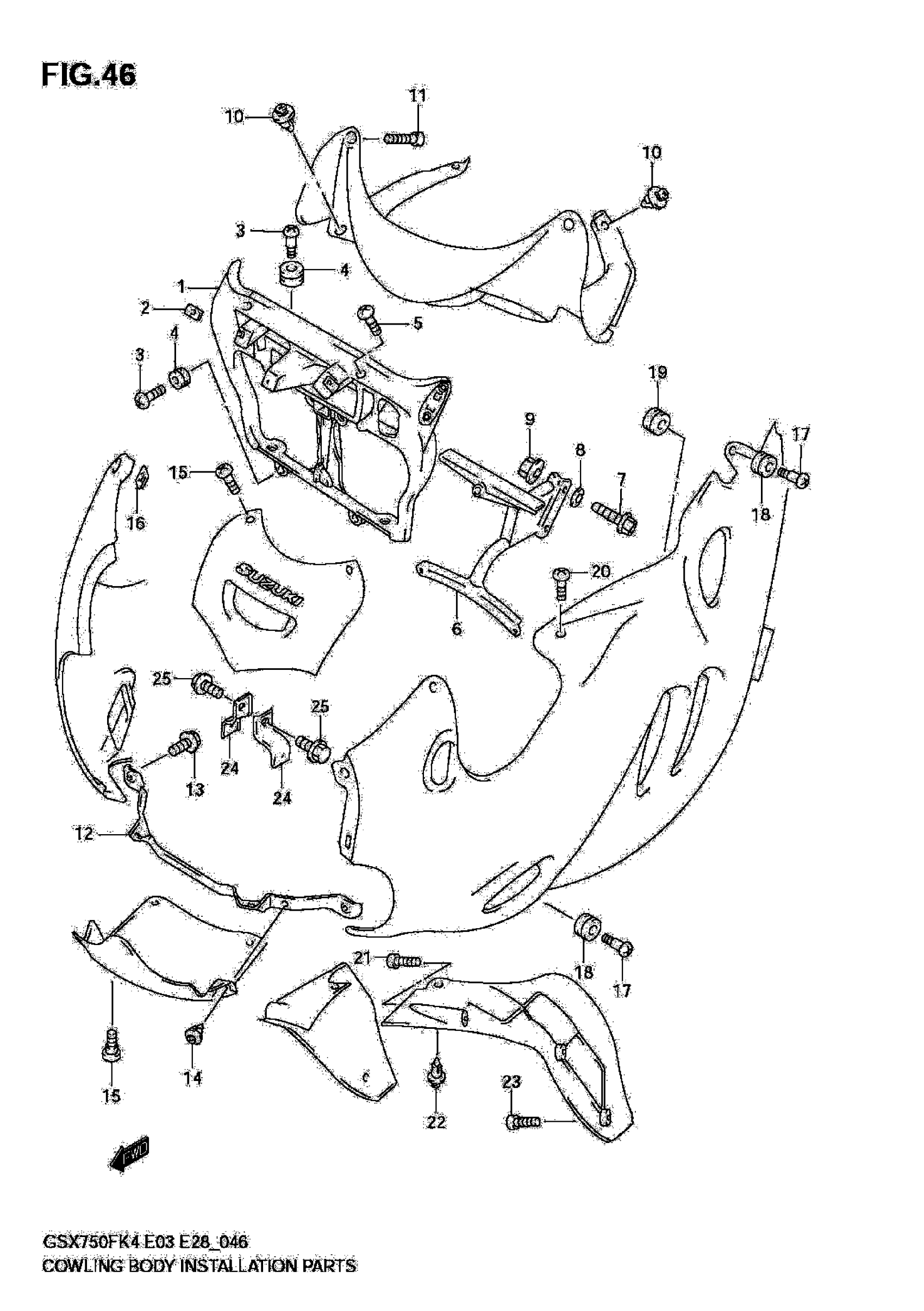 Suzuki GSX750FK4 (2006) COWLING BODY INSTALLATION PARTS Diagram