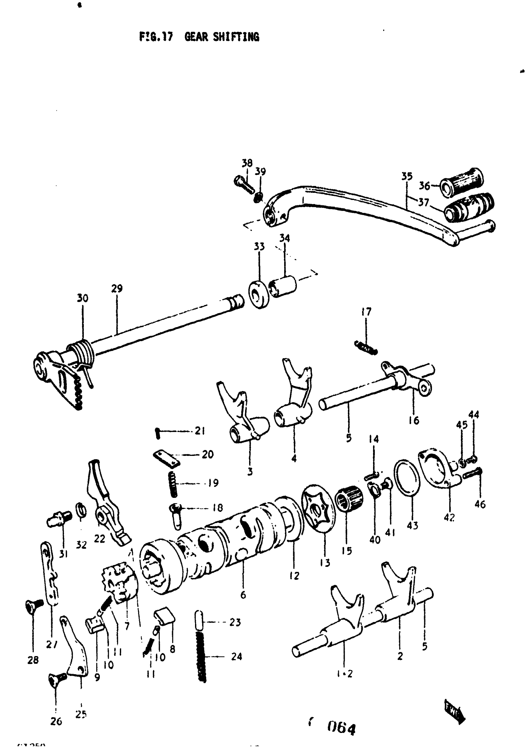 Suzuki GT250 (1977) GEAR SHIFTING Diagram