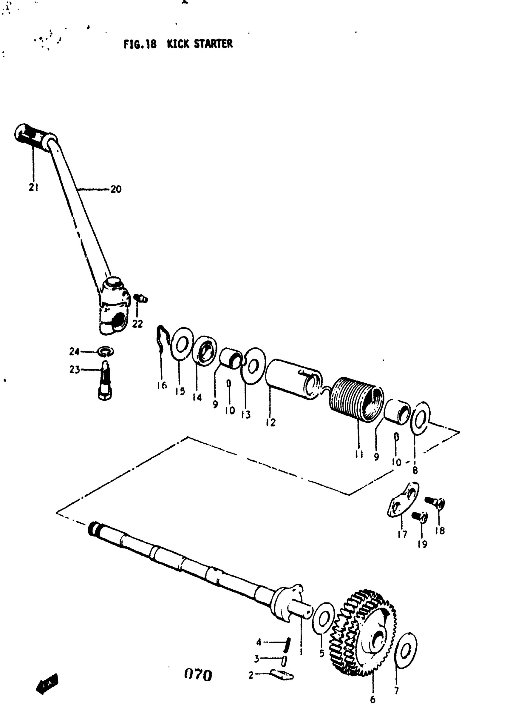 Suzuki GT250 (1977) KICK STARTER Diagram