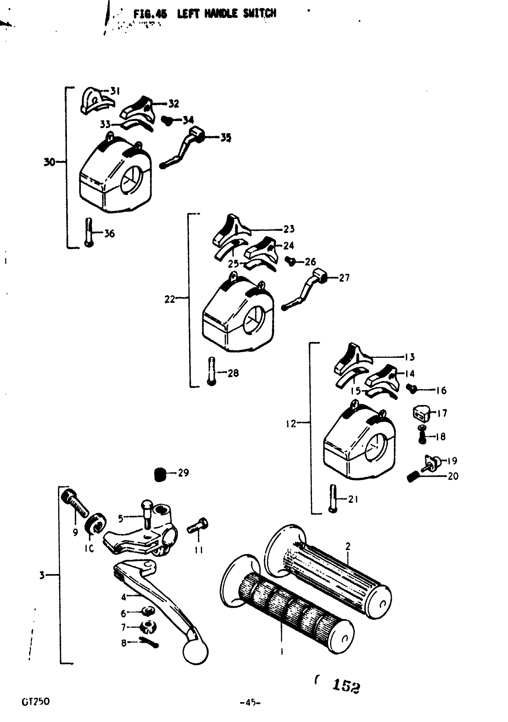 Suzuki GT250 (1977) LEFT HANDLE SWITCH Diagram