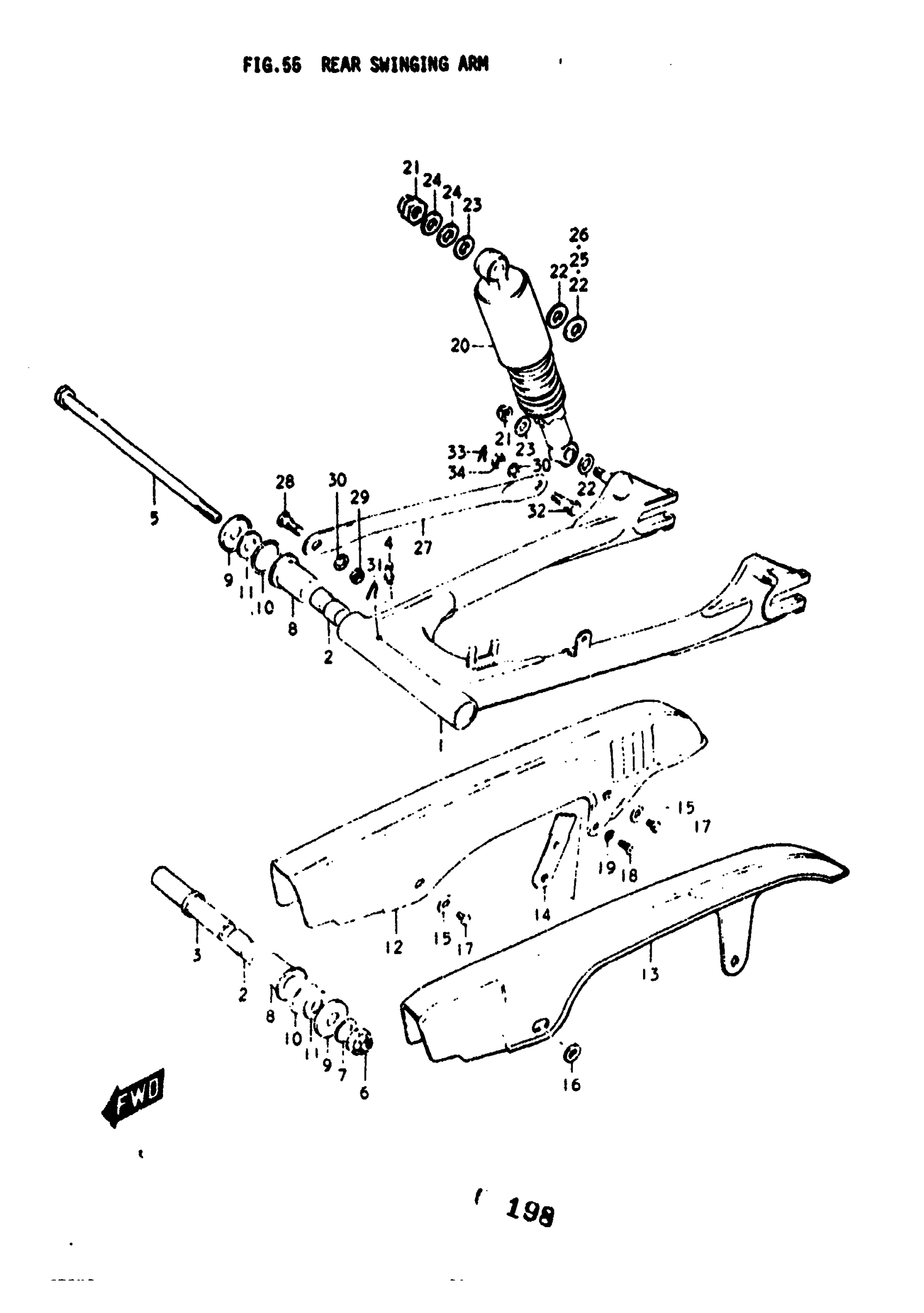 Suzuki GT380 (1977) REAR SWINGING ARM Diagram
