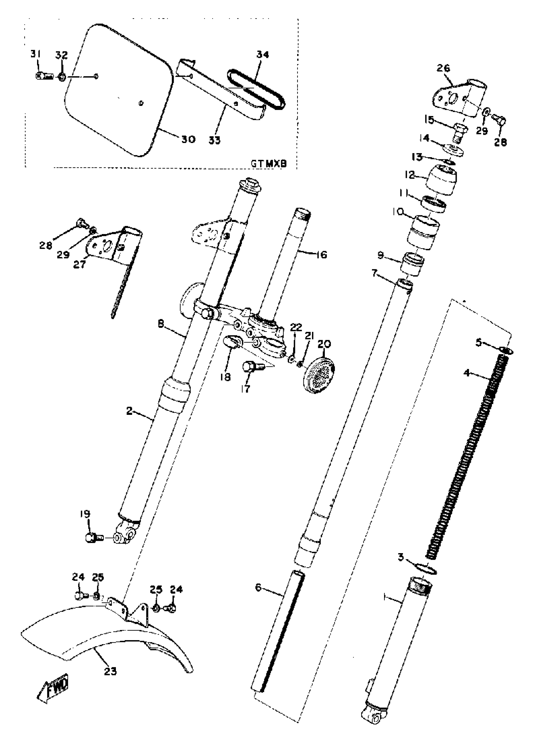 Yamaha GT80MXB (GT80MX) 1975 FRONT FORK - FRONT FENDER Diagram