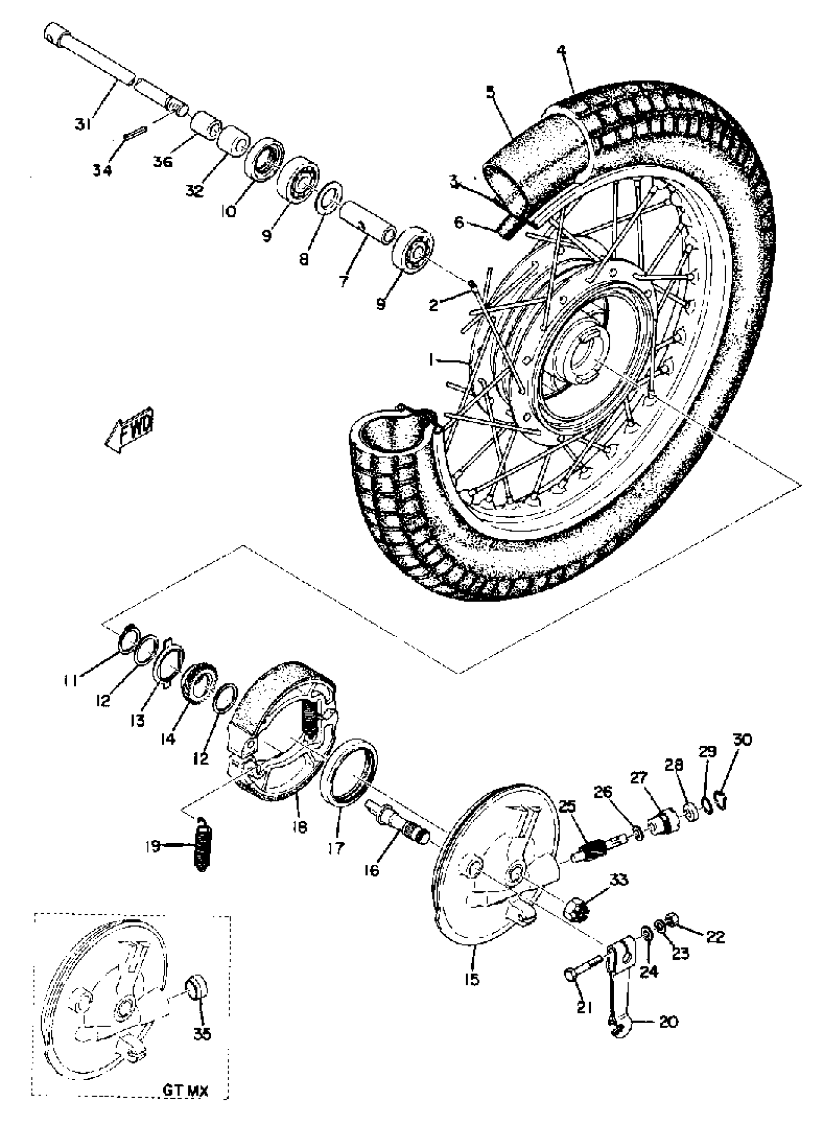 Yamaha GT80MXB (GT80MX) 1975 FRONT WHEEL Diagram