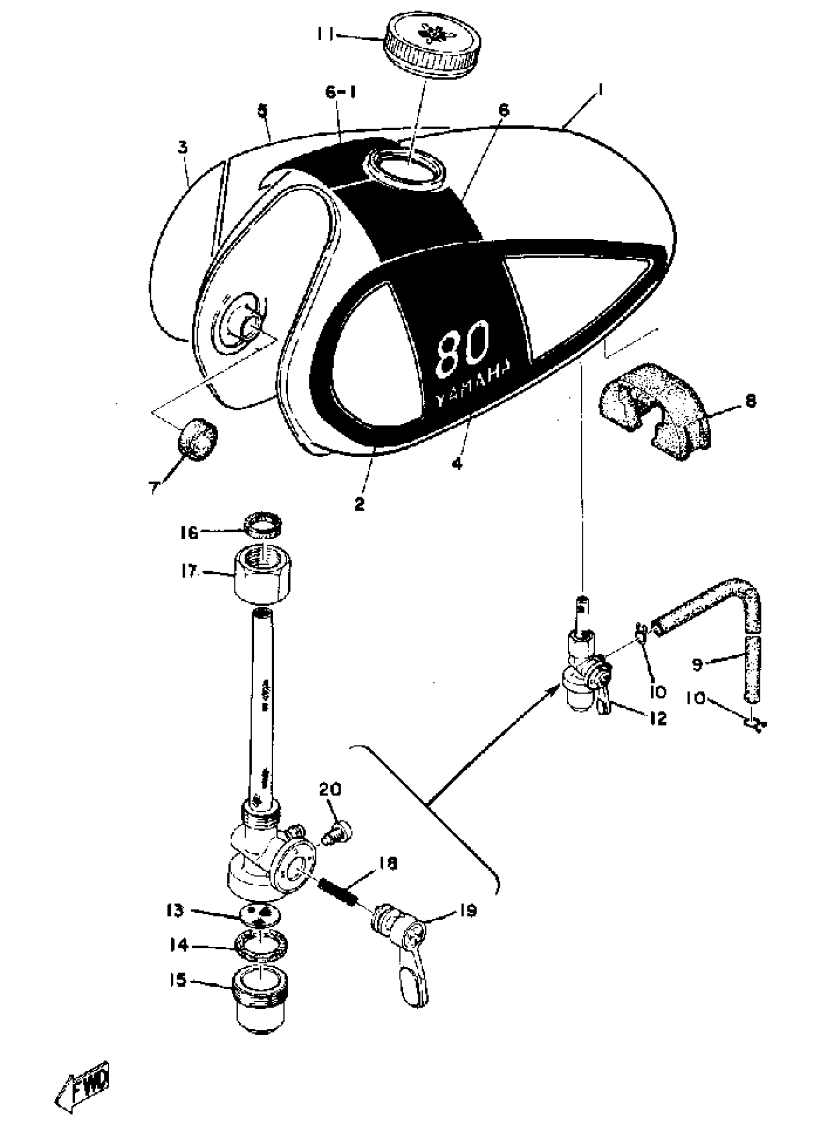Yamaha GT80MXB (GT80MX) 1975 FUEL TANK Diagram