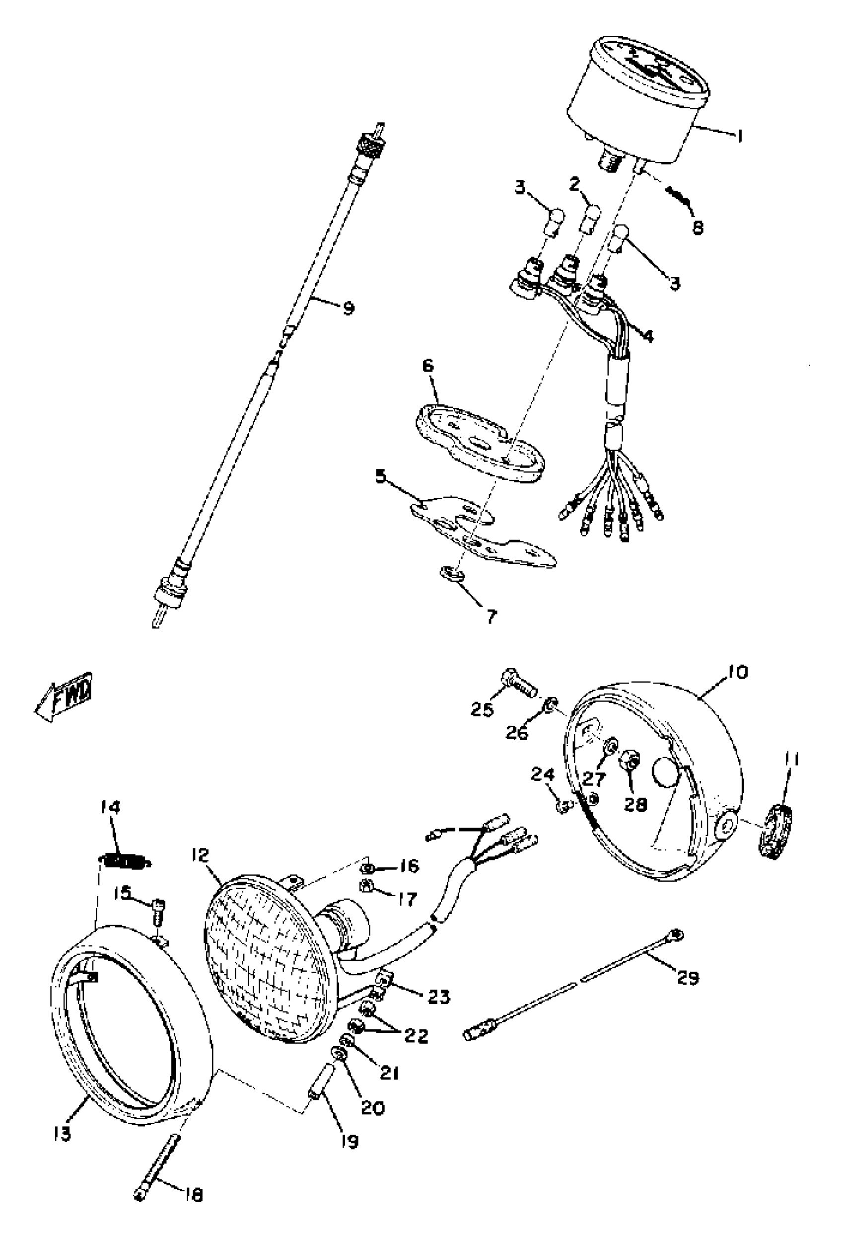 Yamaha GT80MXB (GT80MX) 1975 HEAD LAMP - SPEEDOMETER Diagram