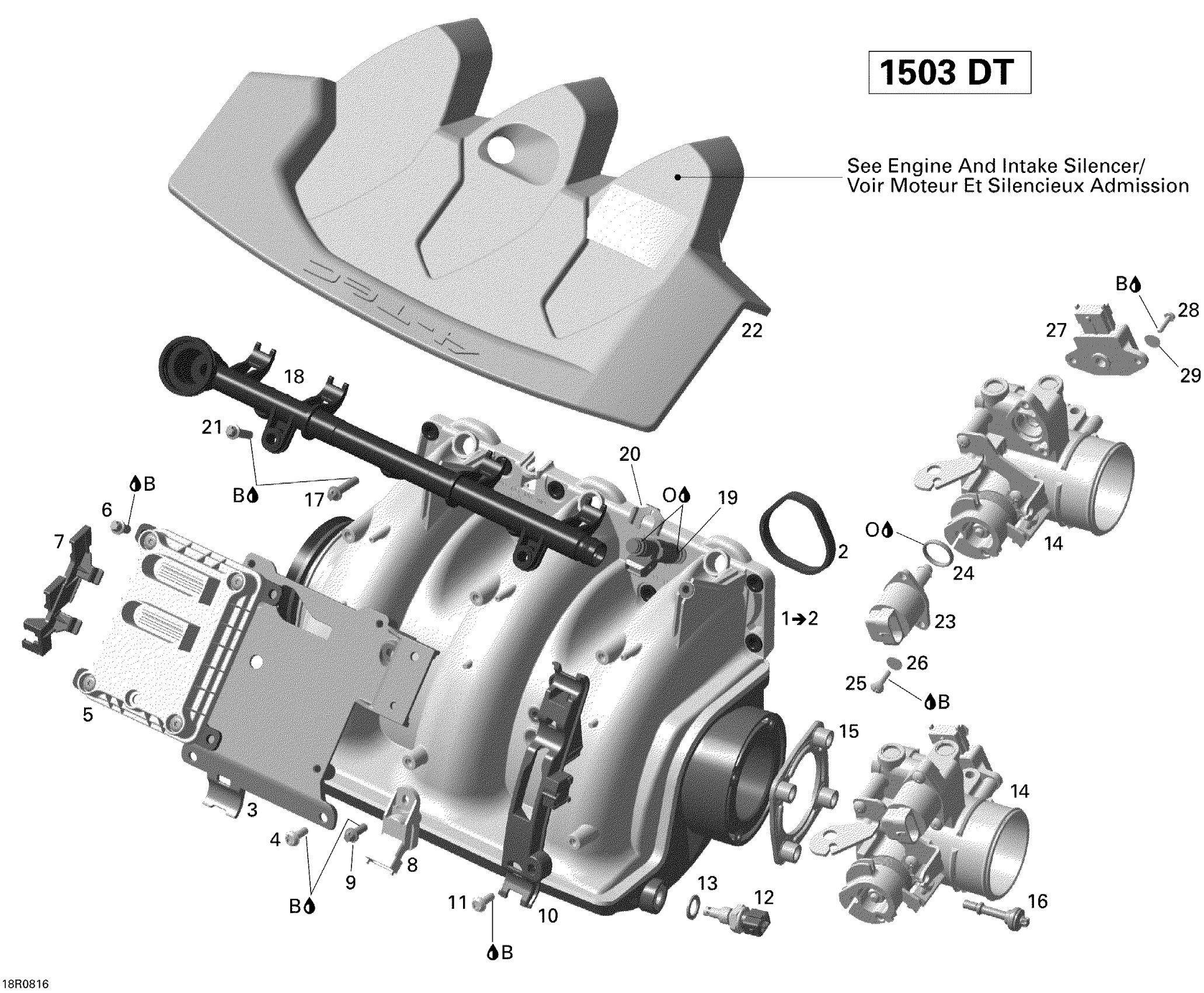 Sea-doo GTI 130, 2008 02- Air Intake Manifold And Throttle Body Diagram