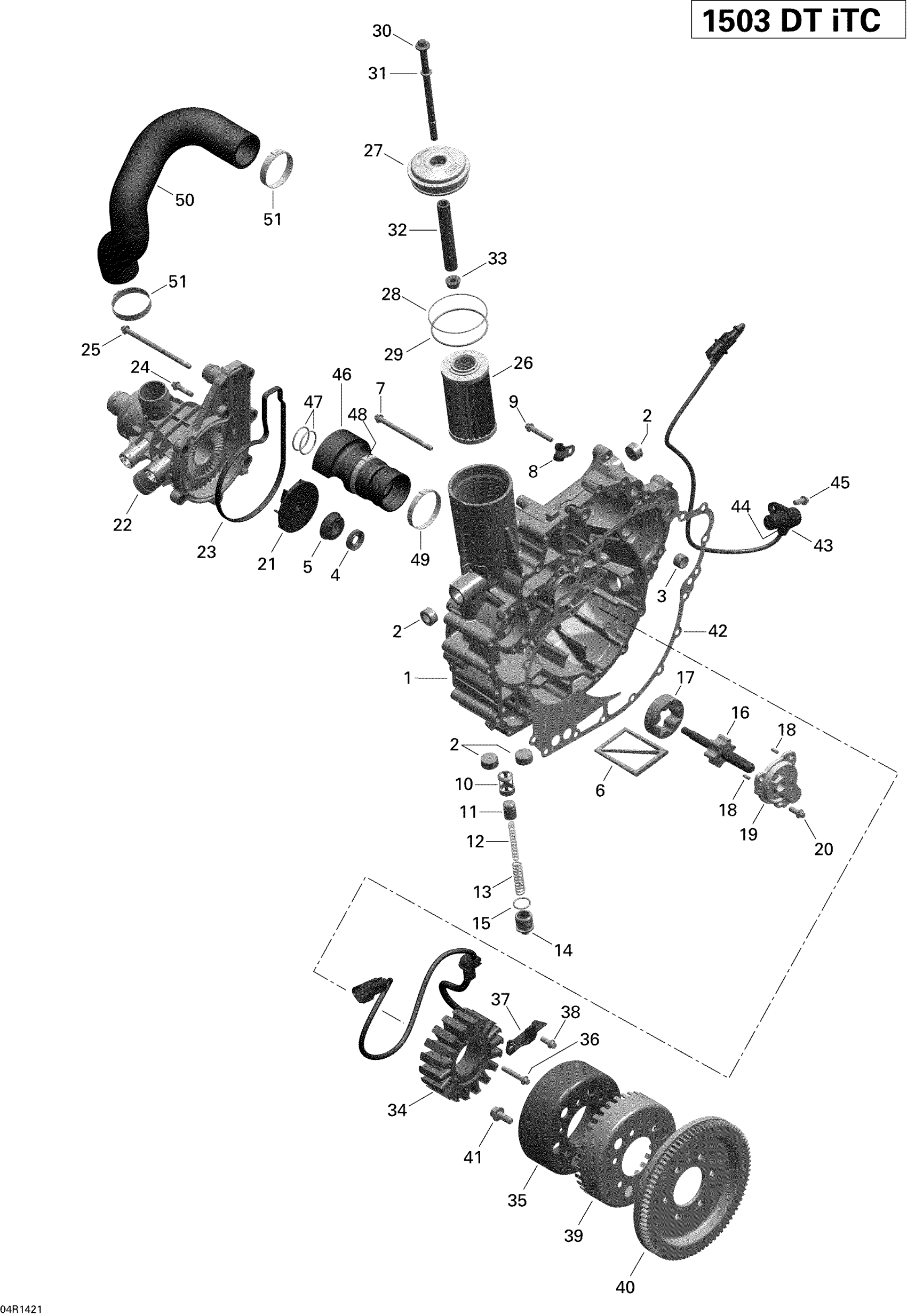 Sea-doo GTI 130, 2014 03- PTO Cover And Magneto Diagram