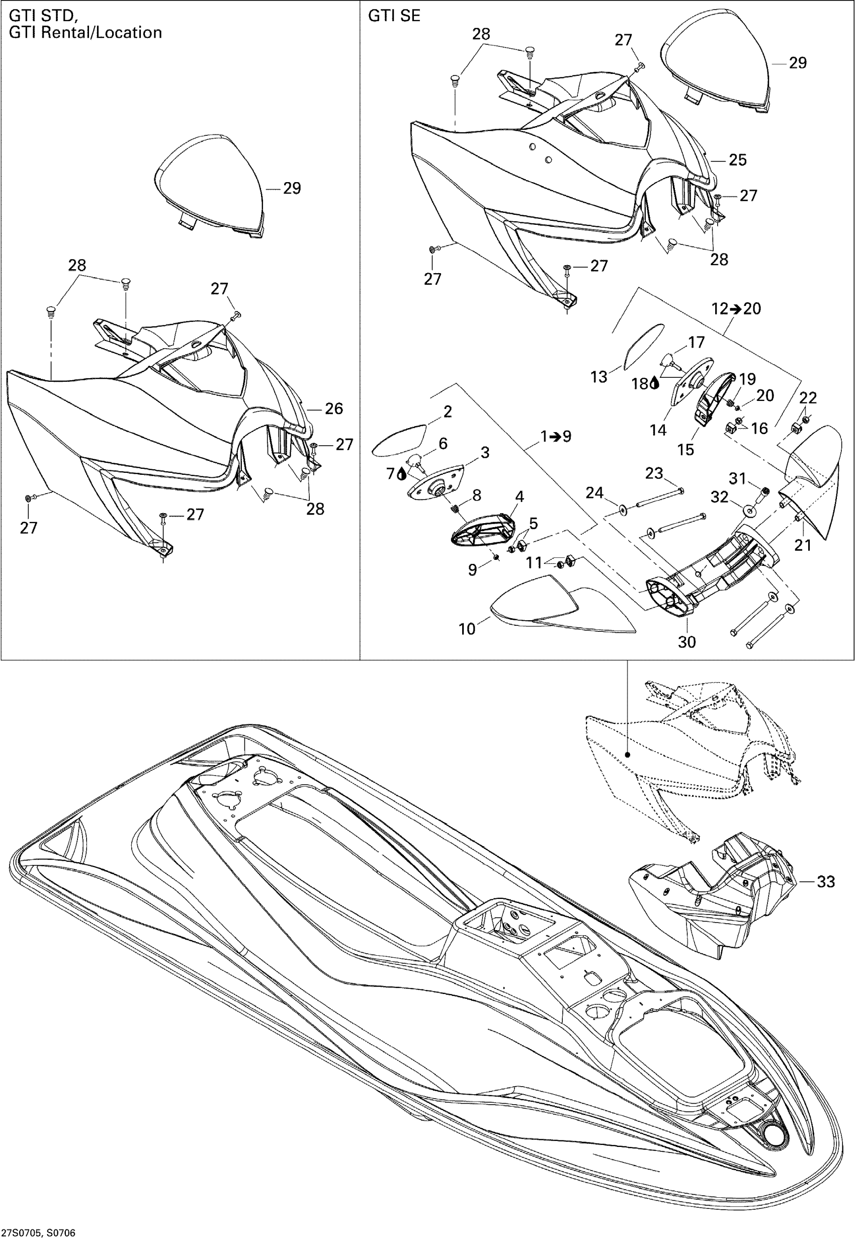 Sea-doo GTI 4-TEC SE, 2007 09- Body, Front View SE Diagram