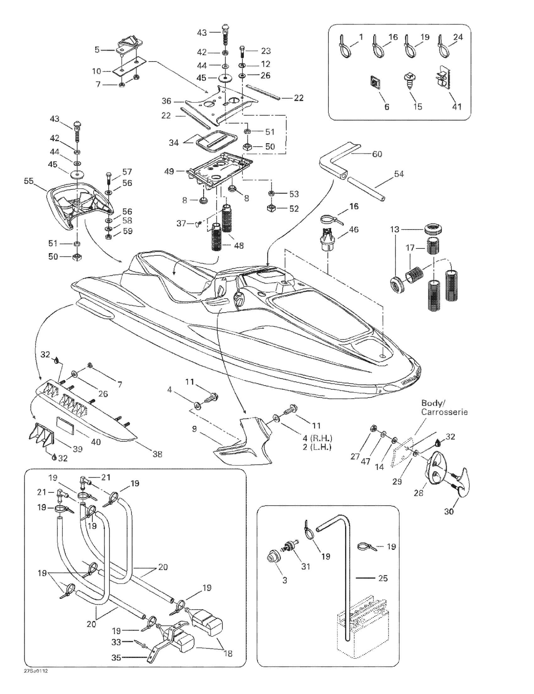 Sea-doo GTI, 5552, 2001 Body, Front View Diagram