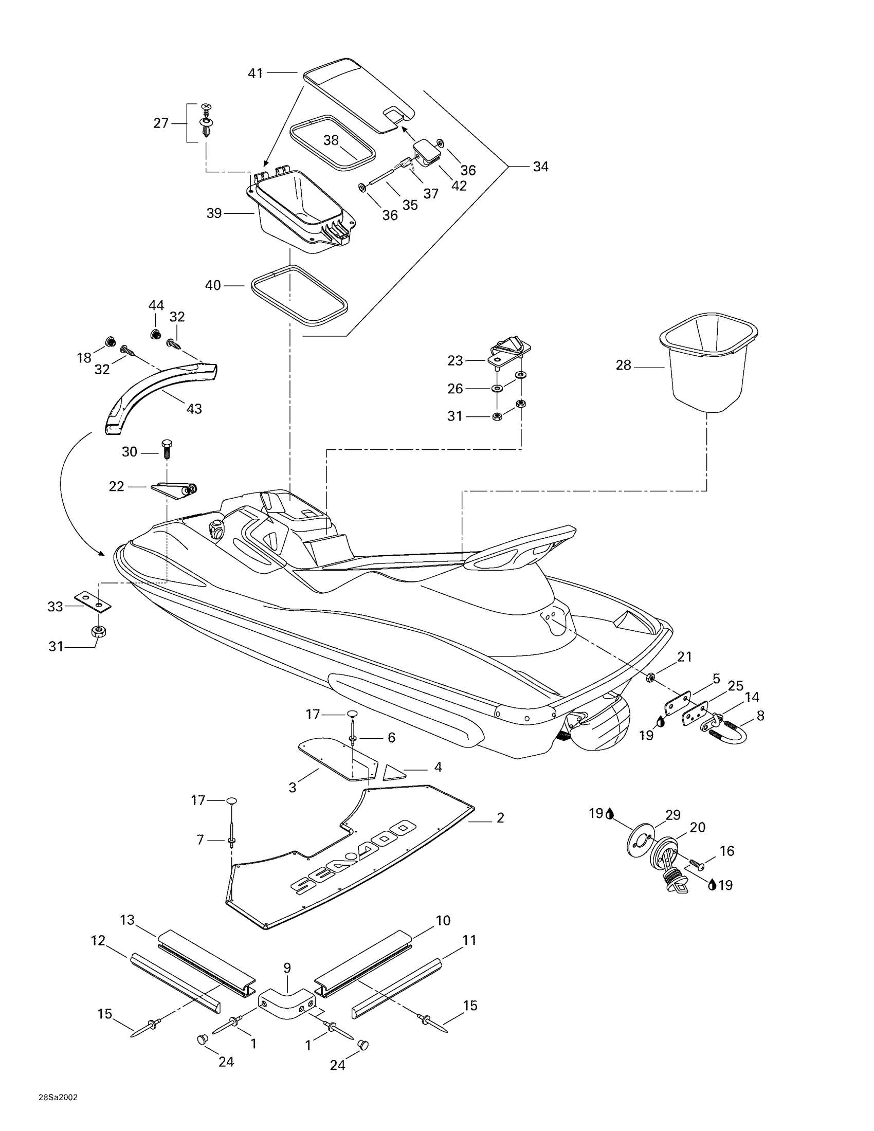 Sea-doo GTI, 5647/5657, 2000 09- Body, Rear View Diagram