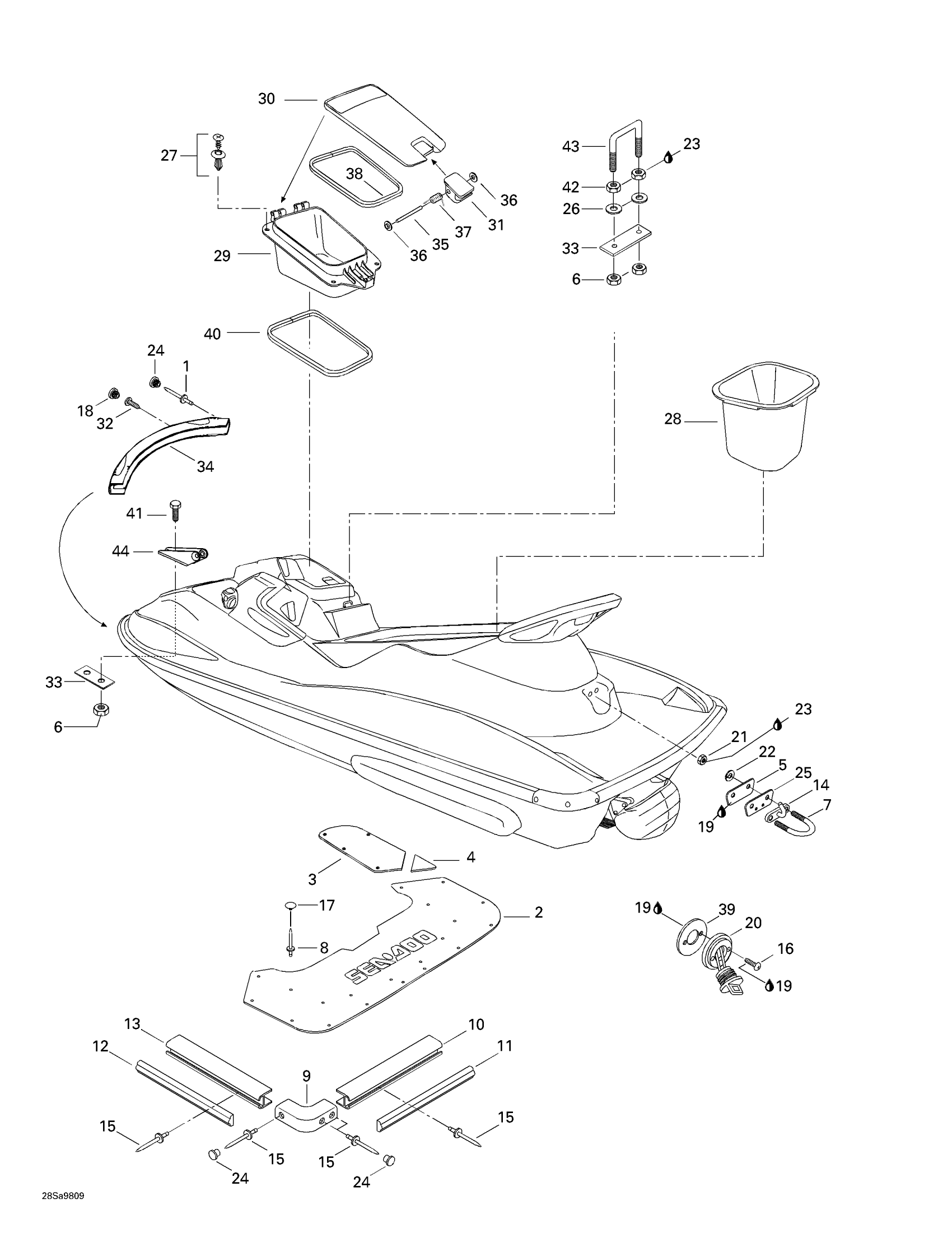Sea-doo GTI, 5836/5841, 1998 09- Body Diagram