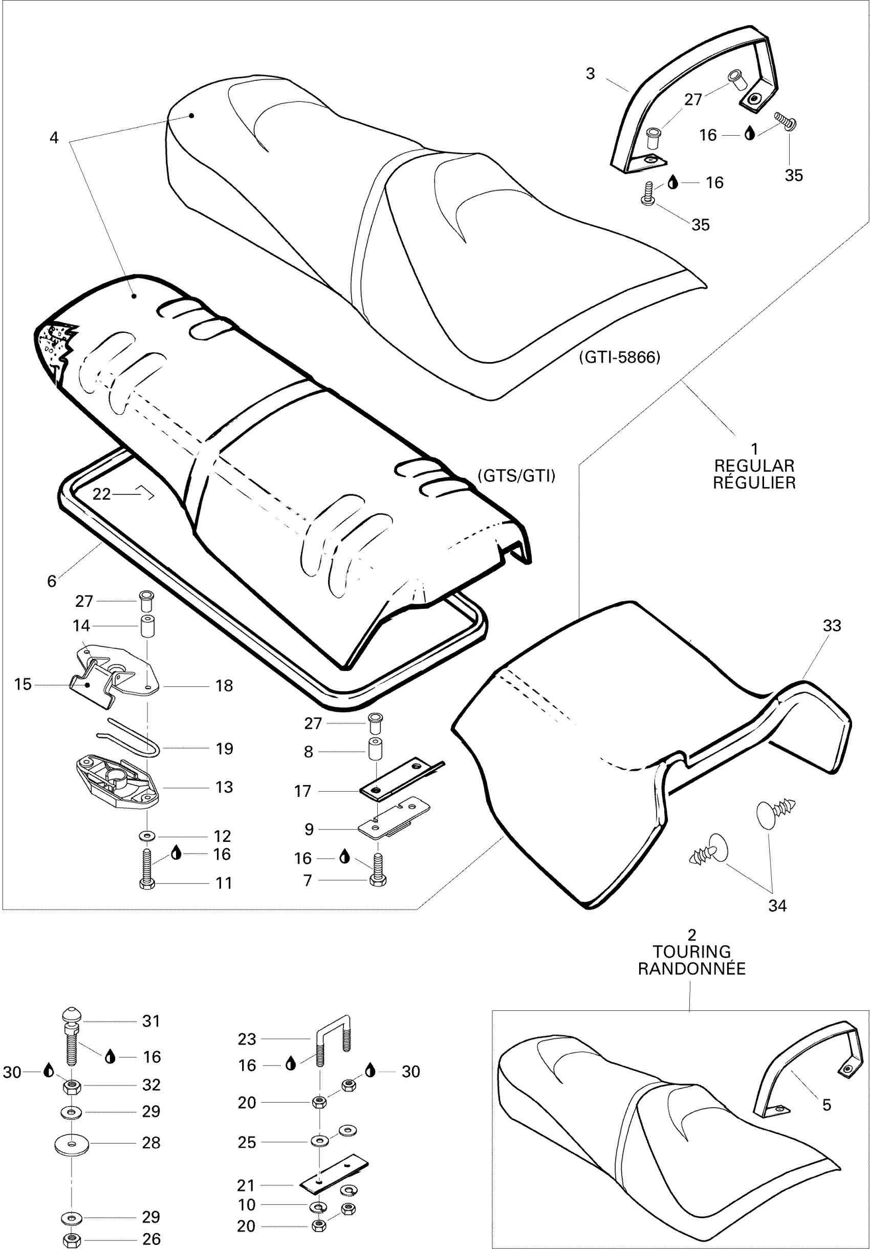 Sea-doo GTI, 5865, 1996 09- Seat 5865 Diagram