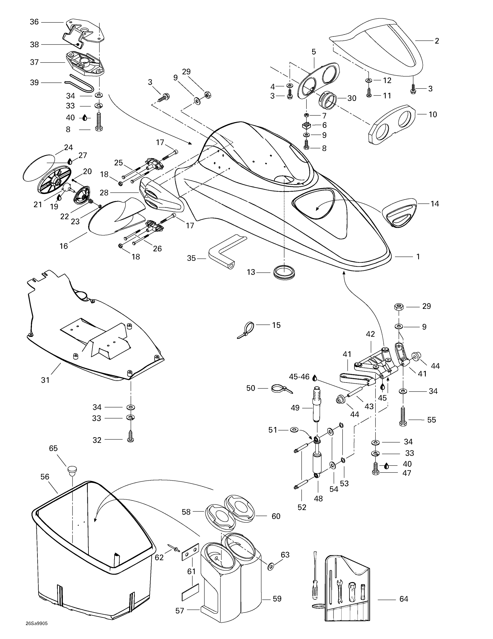 Sea-doo GTI, 5884/5885, 1999 Front Storage Compartment Diagram