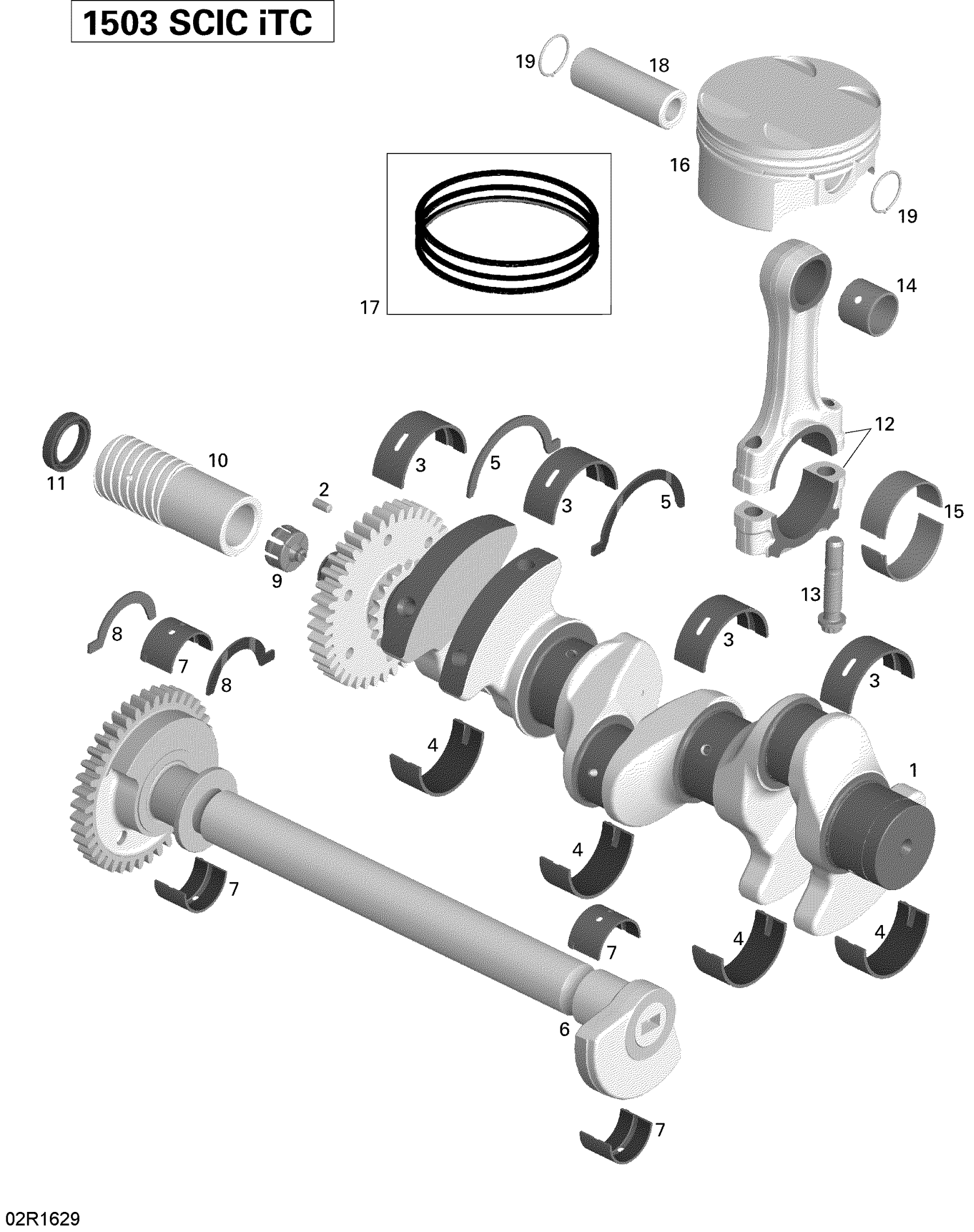 Sea-doo GTI-GTR-GTS, 2016 01- Crankshaft, Pistons and Balance Shaft - 215 Diagram