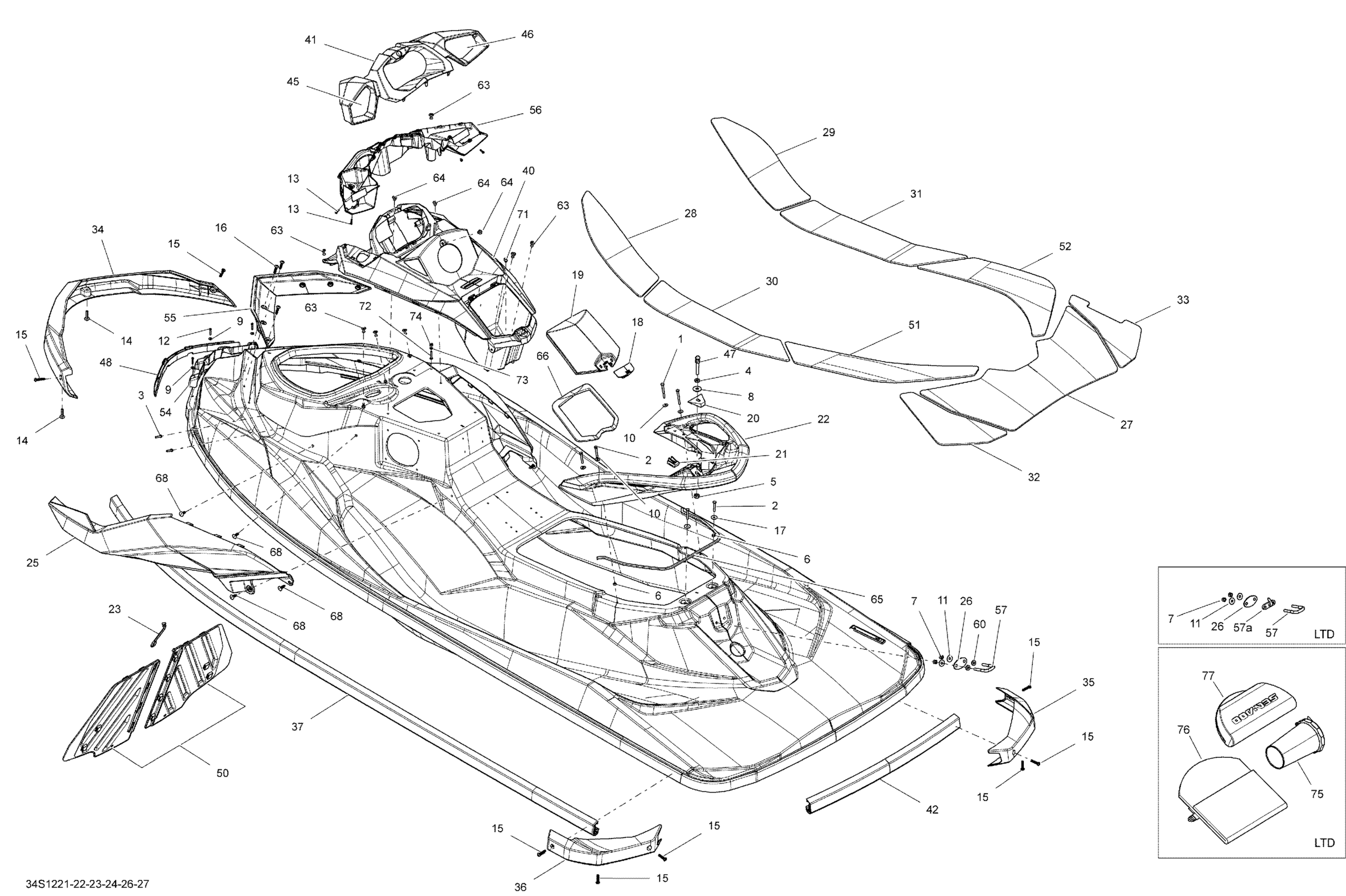 Sea-doo GTI SE 130, 2012 09- Body Diagram