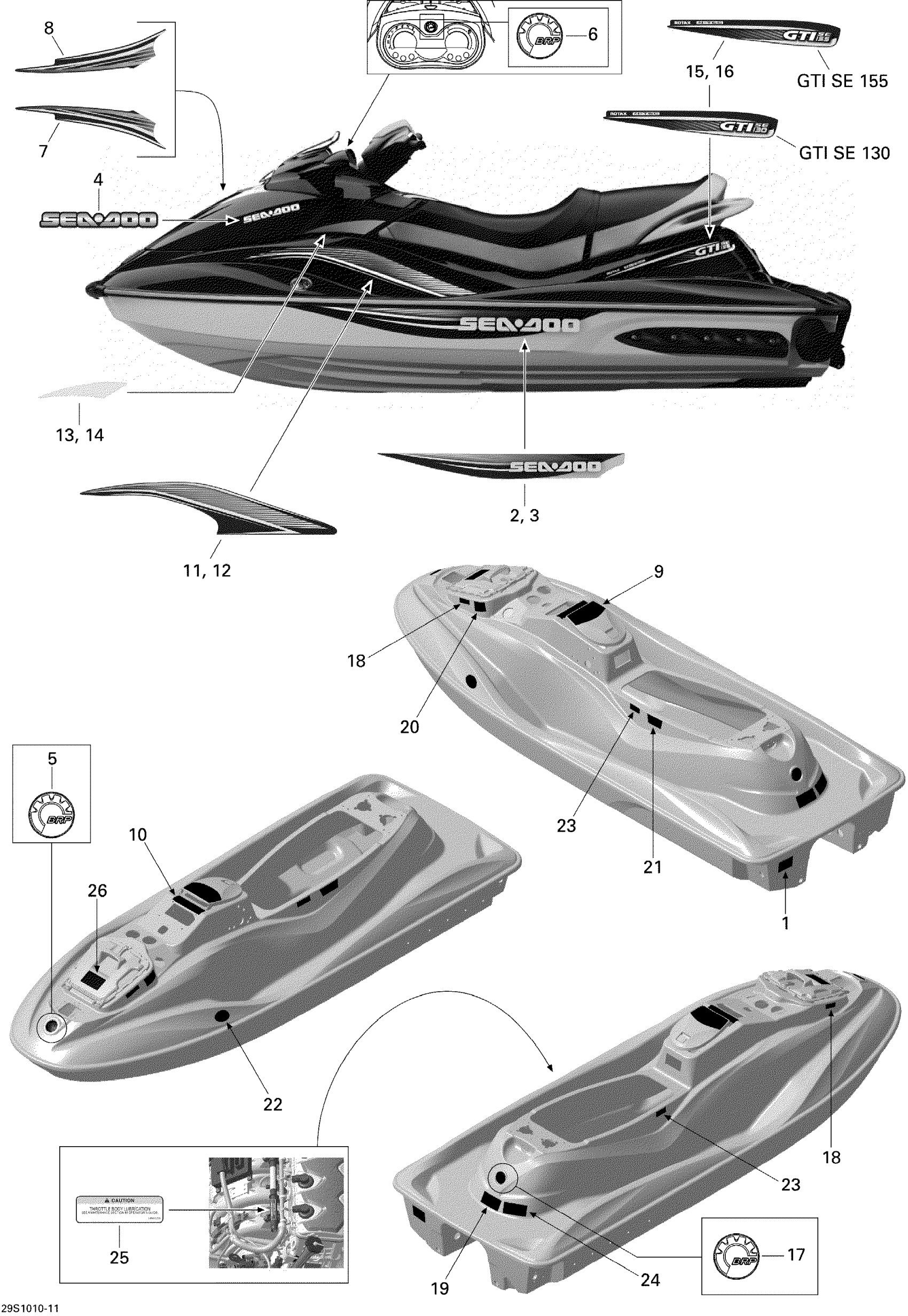 Sea-doo GTI SE 155, 2010 09- Decals Diagram