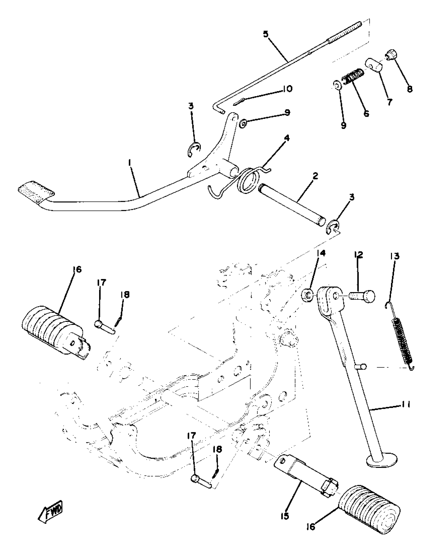 Yamaha GTMXD (GTMX) 1977 STAND - FOOTREST - BRAKE PEDAL Diagram