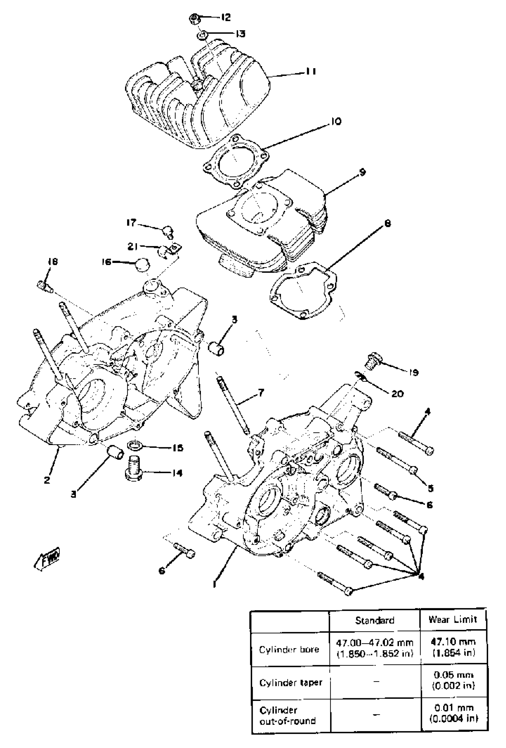 Yamaha GTMXE (GTMX) 1978 CRANKCASE - CYLINDER Diagram