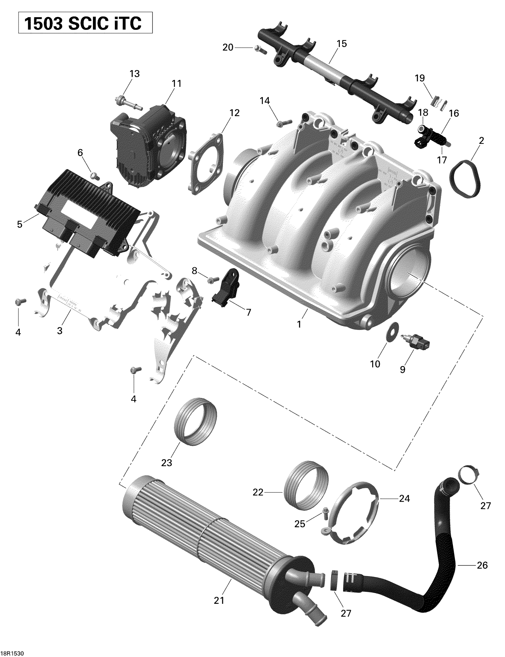 Sea-doo GTR 215, 2015 02- Air Intake Manifold And Throttle Body _18R1530 Diagram