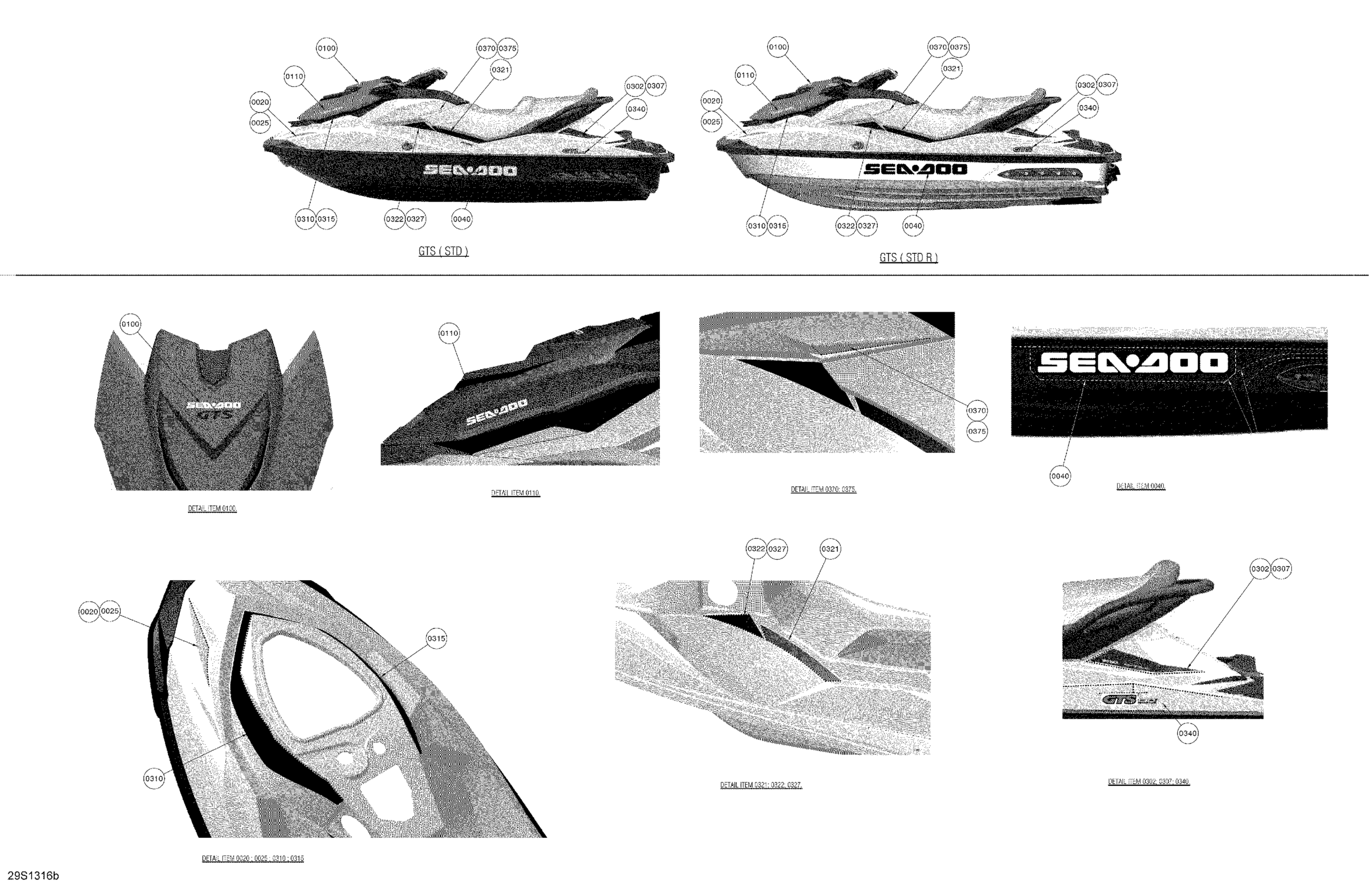 Sea-doo GTS 130 & Rental, 2013 Decals Diagram