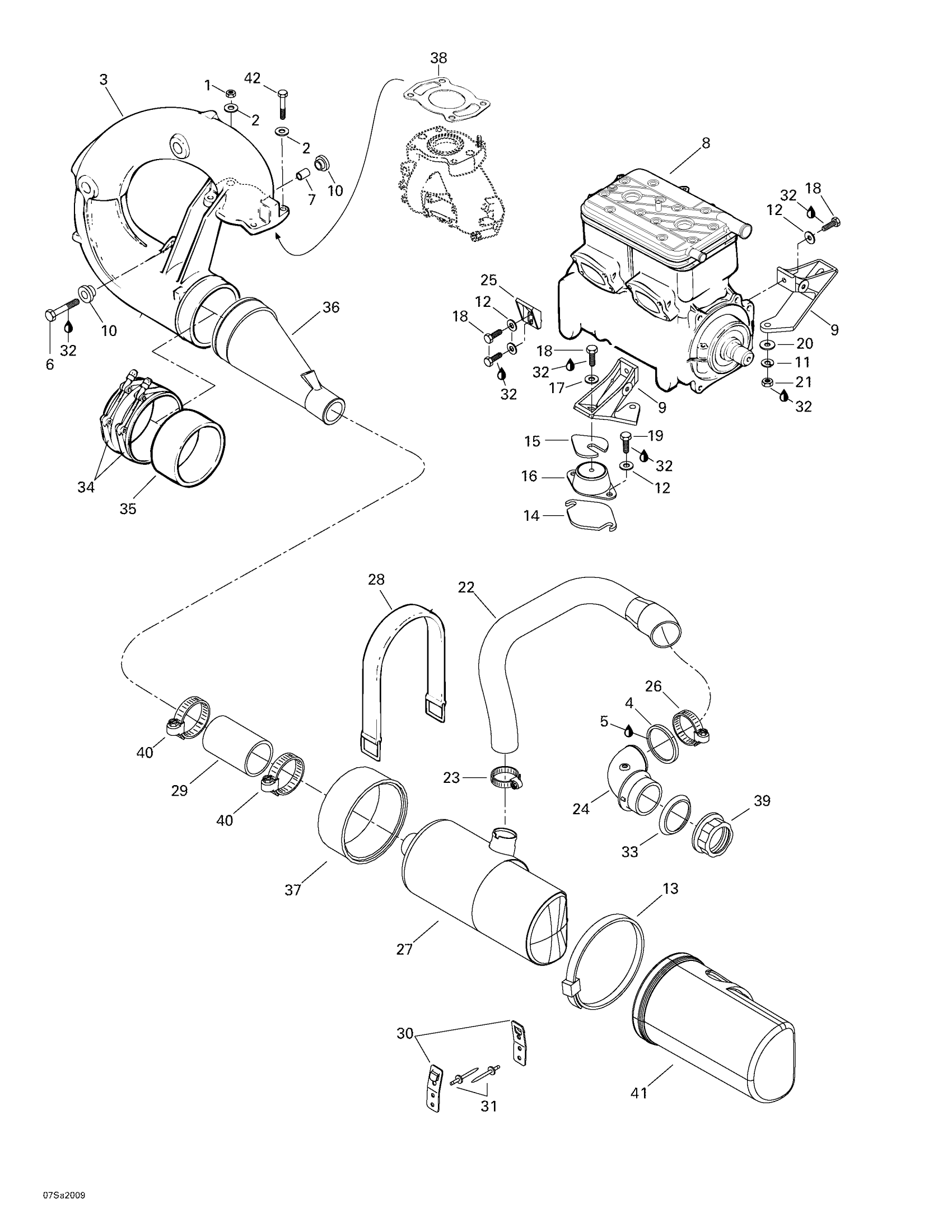 Sea-doo GTS, 5639, 2000 01- Engine Support And Muffler Diagram